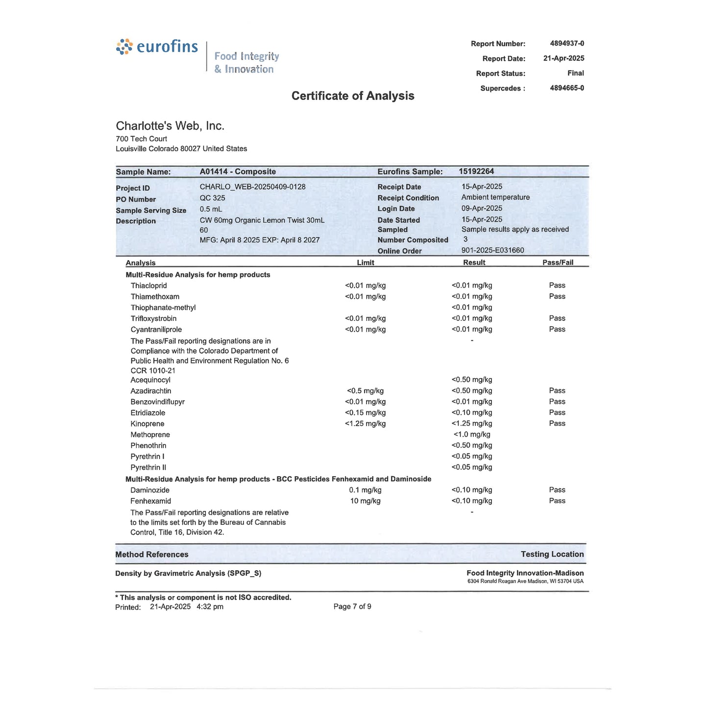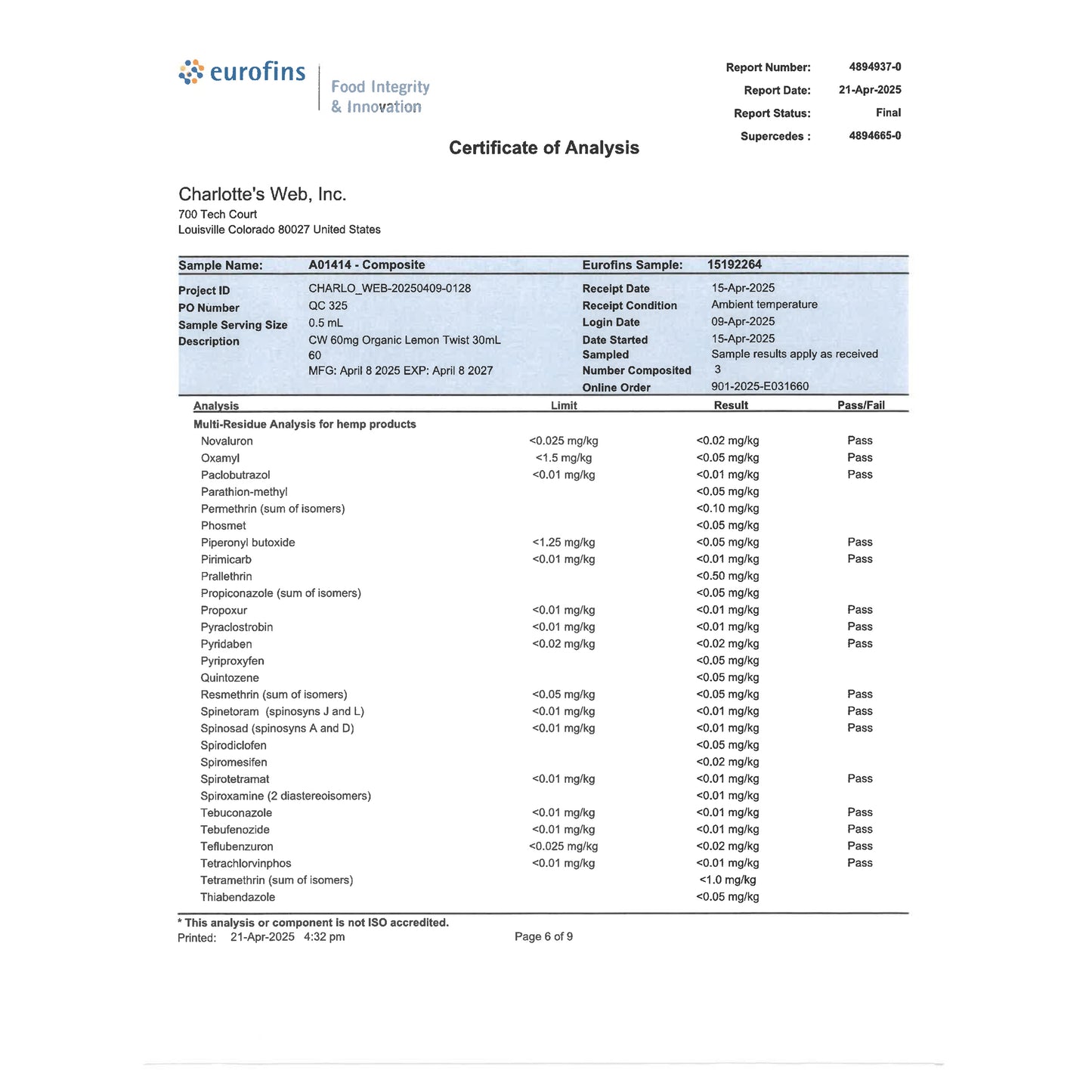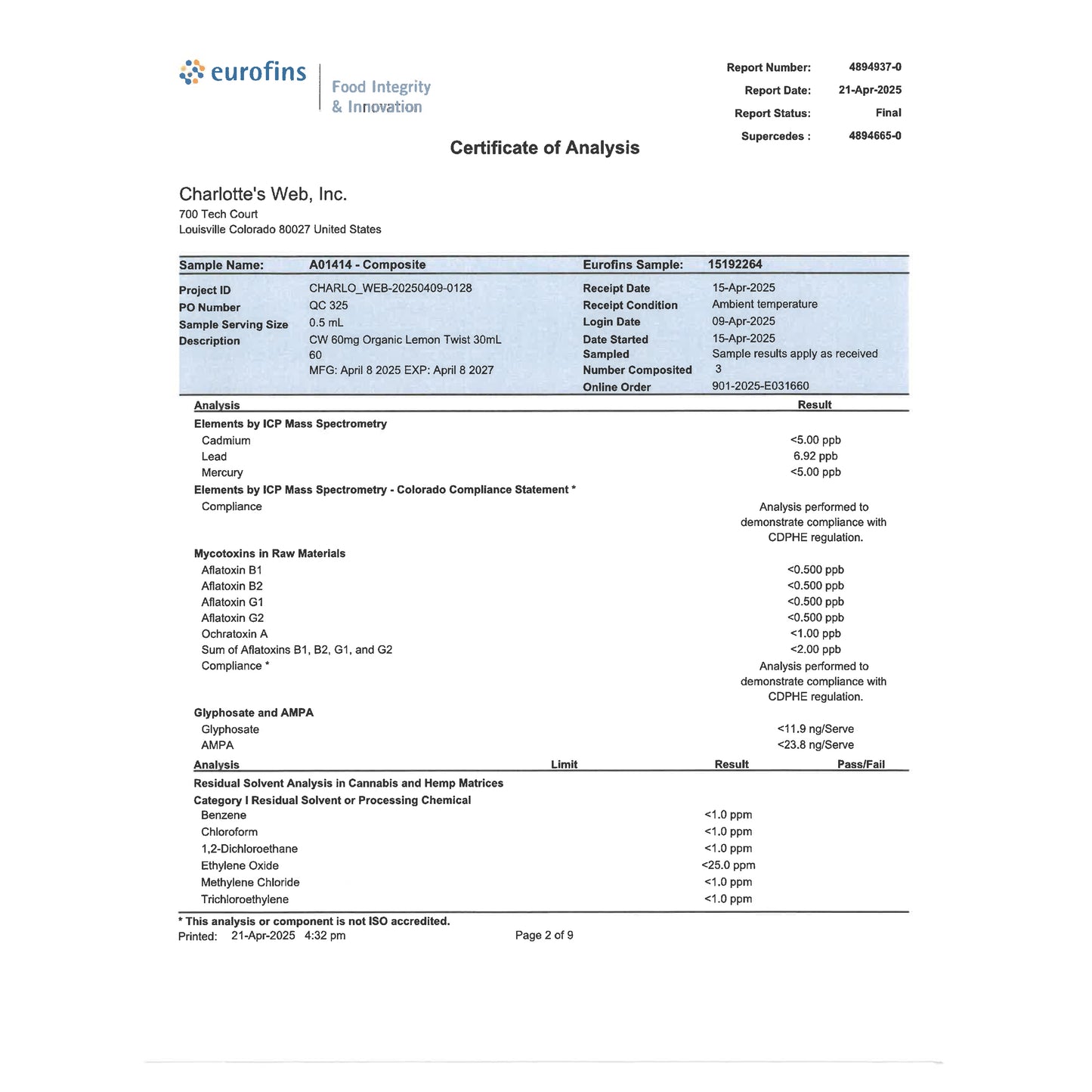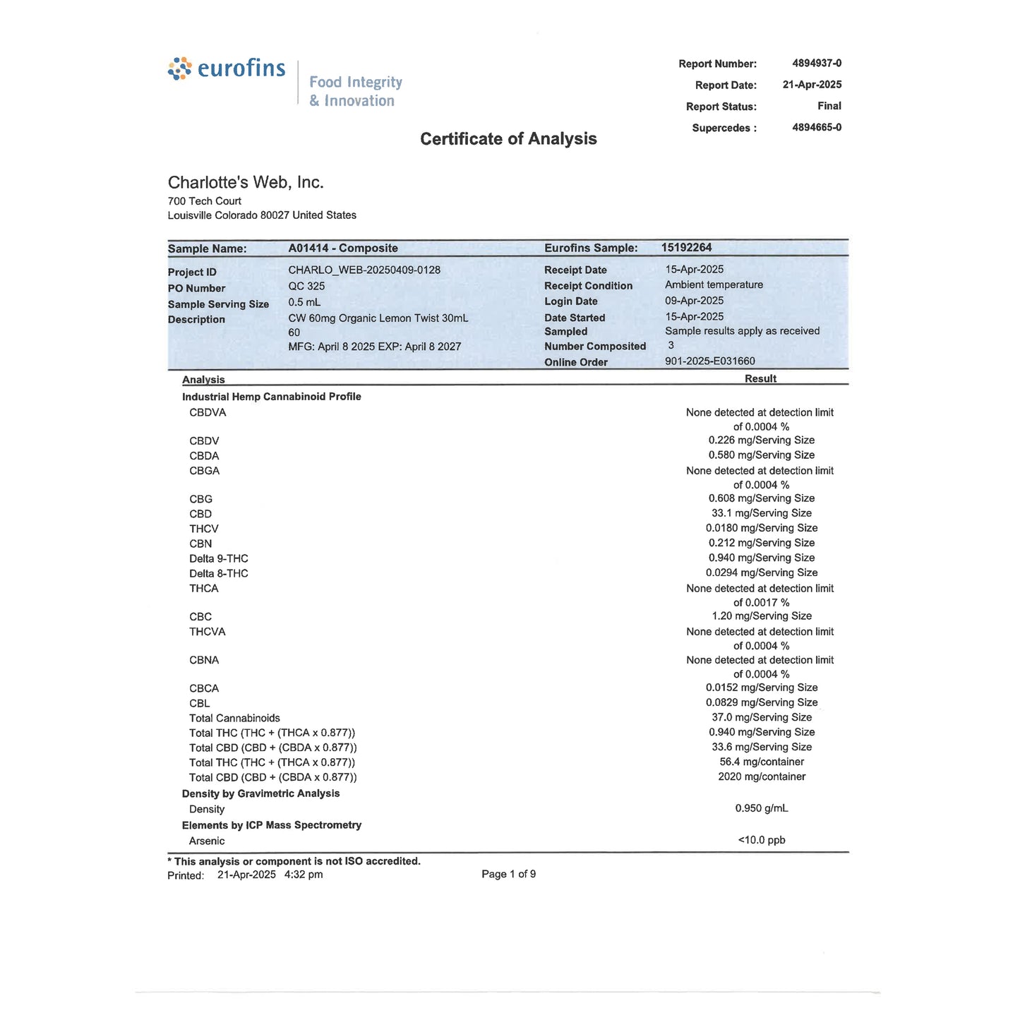 Charlotte's Web | CBD Full Spectrum Tincture 60mg/30ml - Lemon Twist