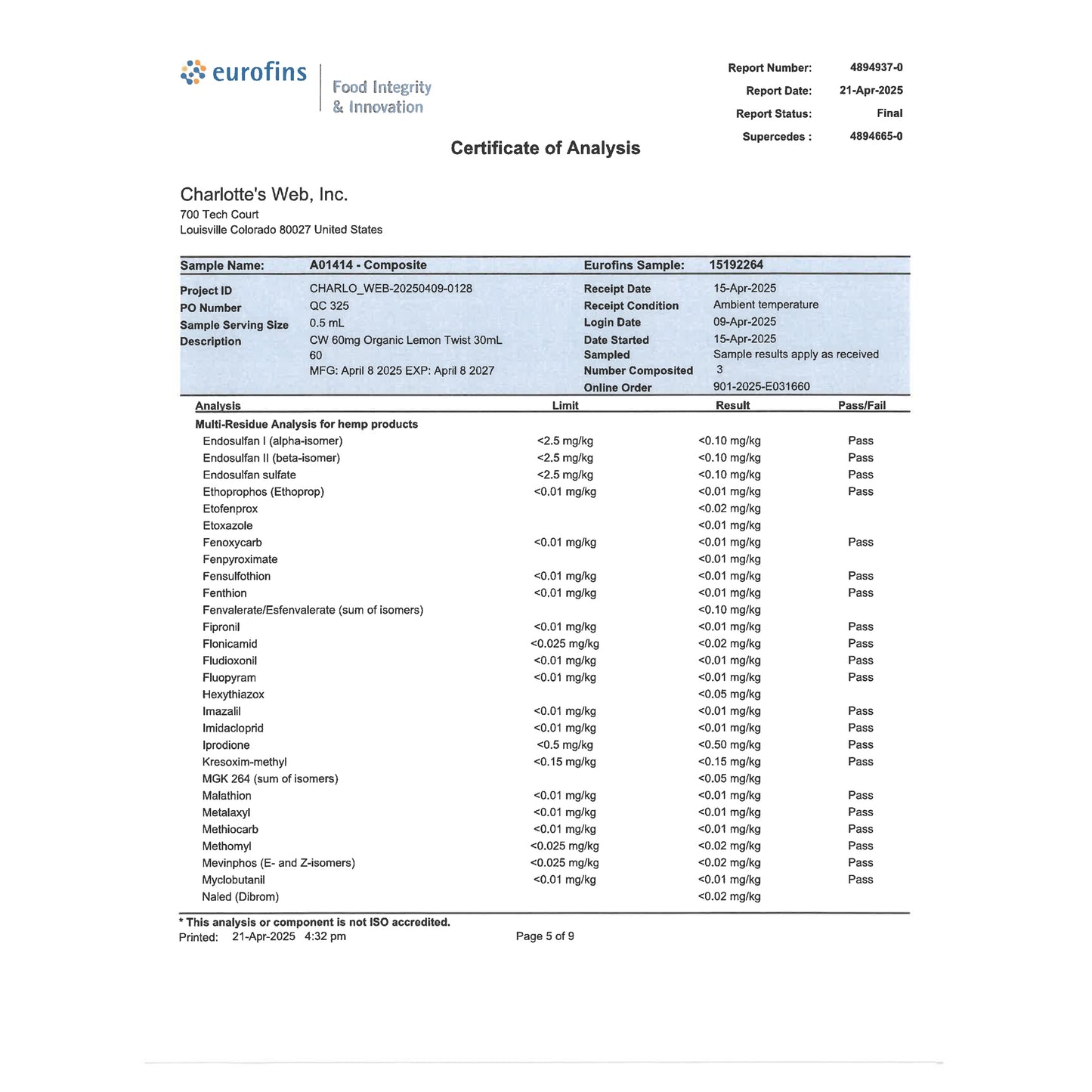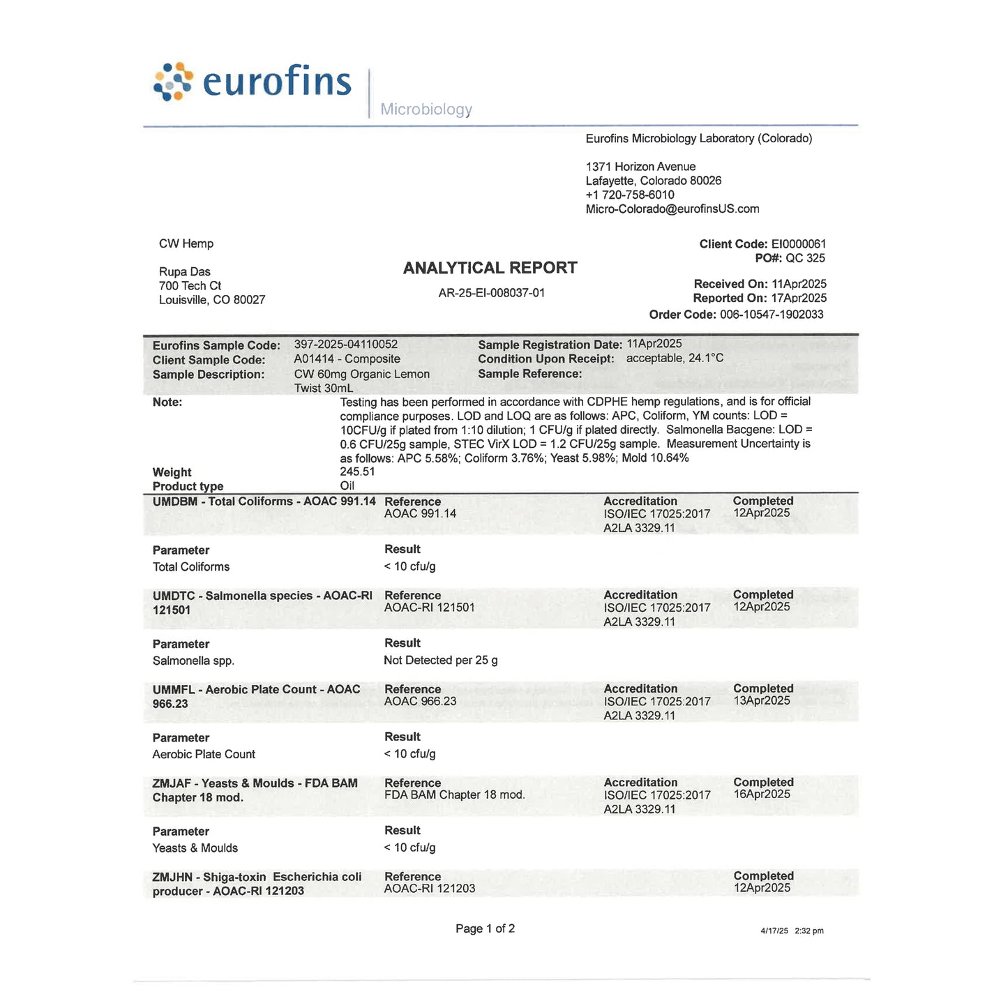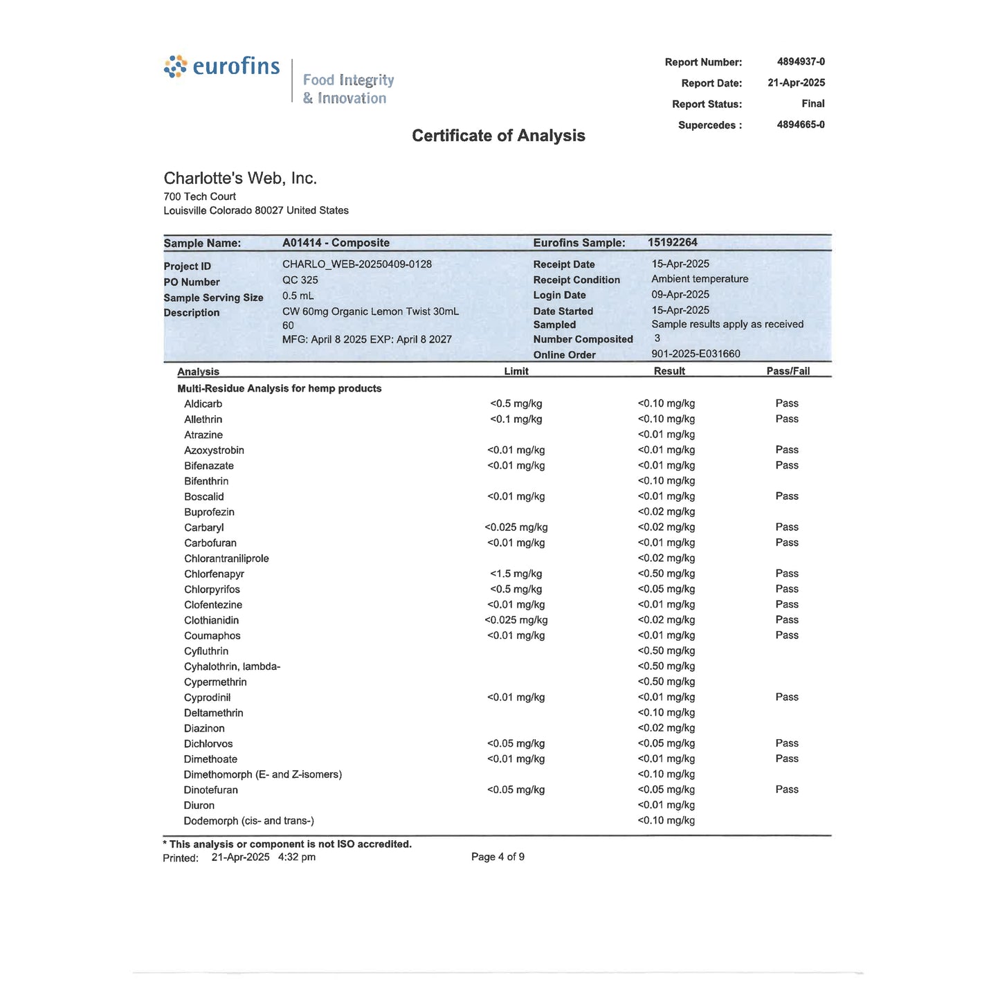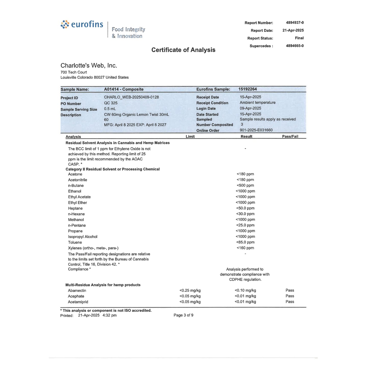 Charlotte's Web | CBD Full Spectrum Tincture 60mg/30ml - Lemon Twist