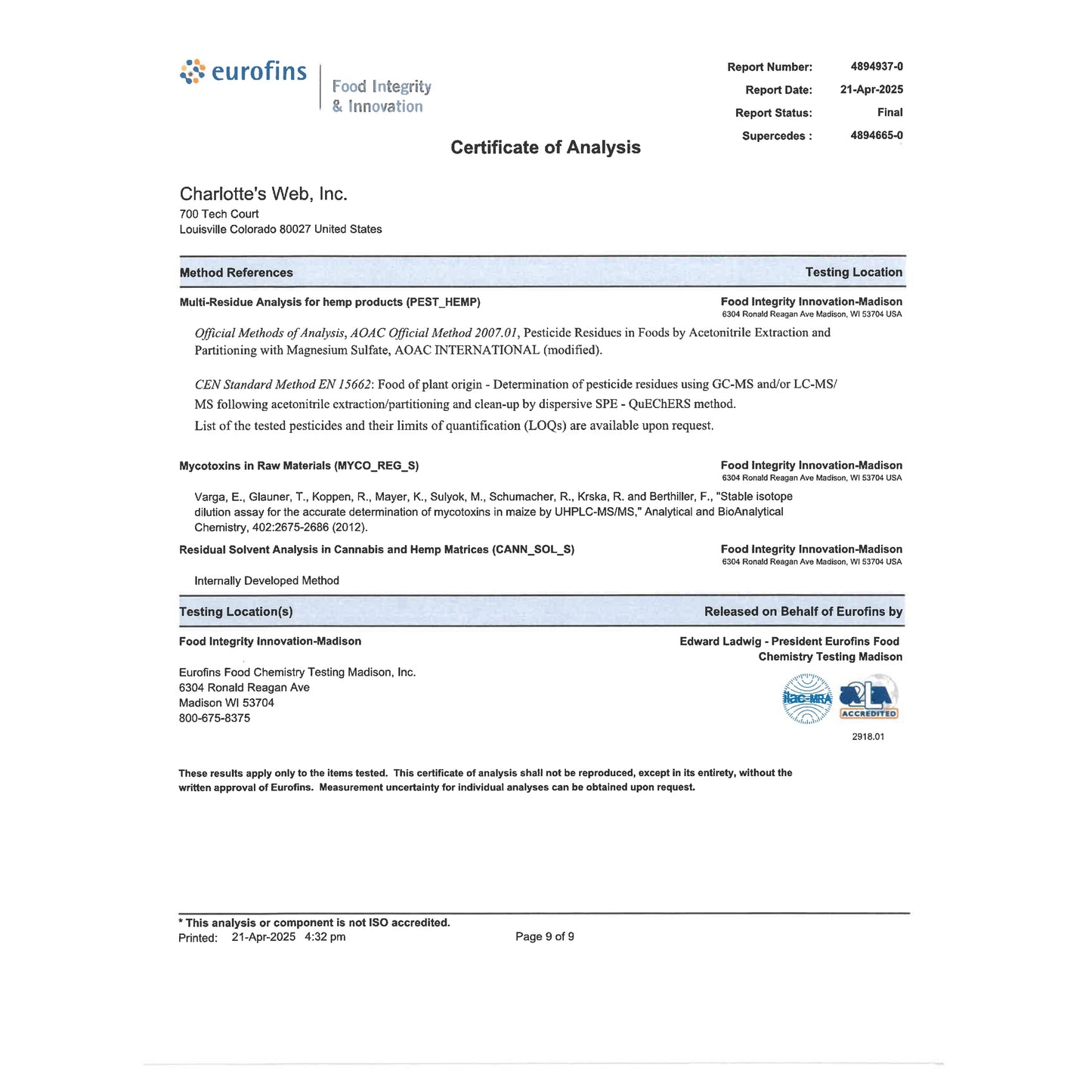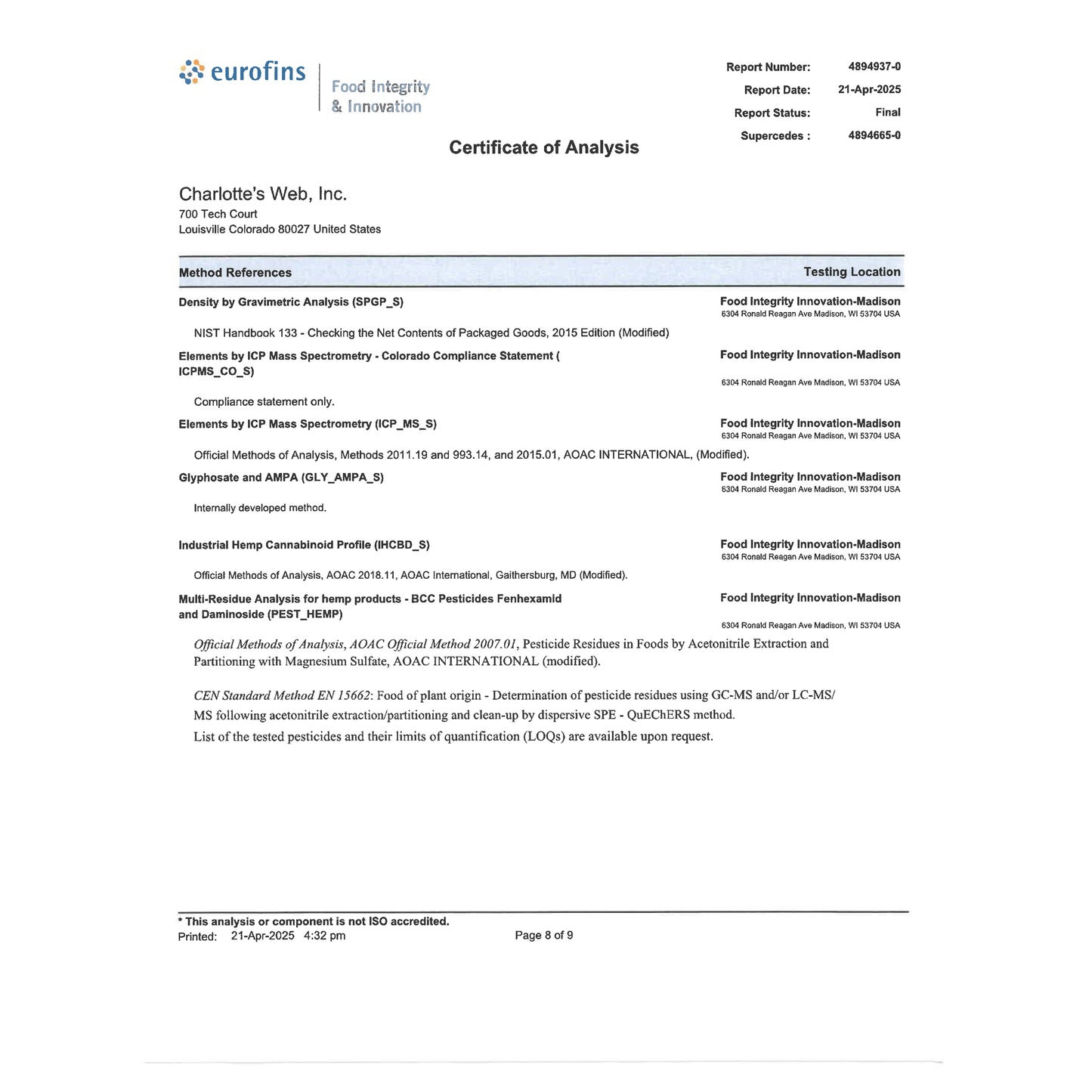 Add to your daily health routine. Specially formulated with the most advanced concentration of the cannabinoids found in Charlotte's Web proprietary hemp extracts. Advanced mind and body wellness for those under the most severe bodily stresses.