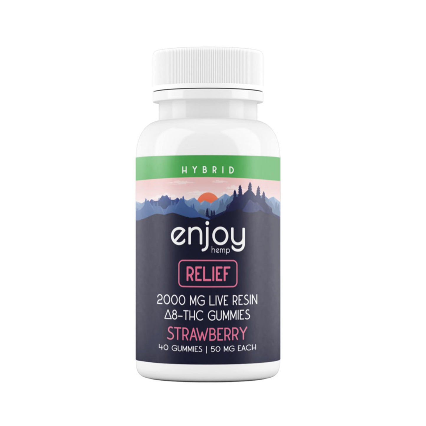 Enjoy Hemp | Relief Delta 8 THC Live Resin Gummies 2000mg - Infused Strawberry (Hybrid) - 40ct