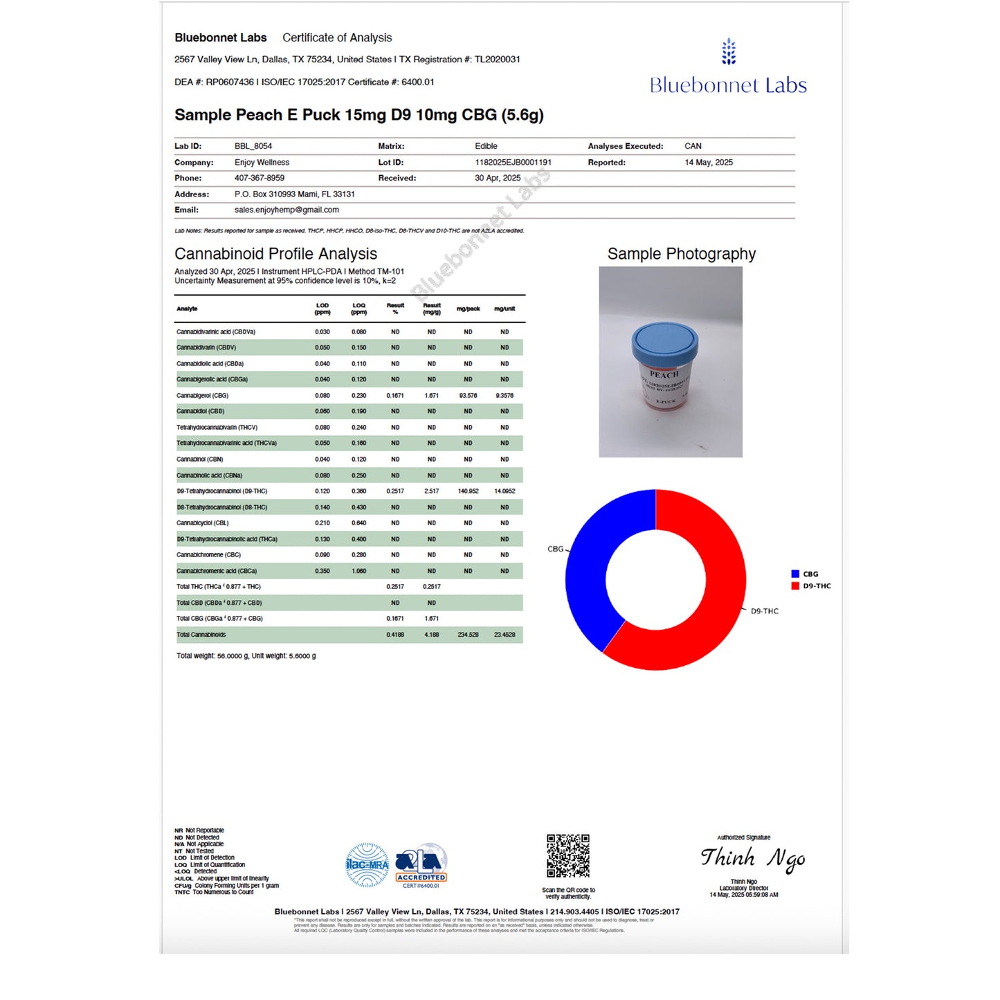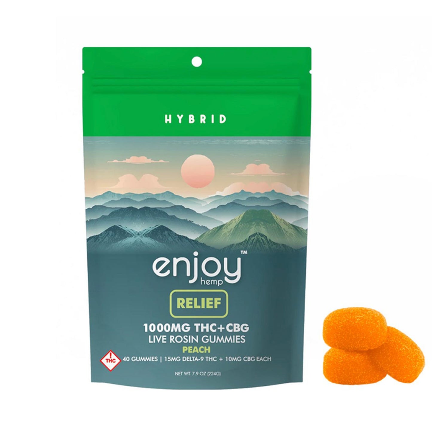 Enjoy Hemp | Relief Delta 9 THC 1000mg + CBG Live Rosin Gummies - Peach (Hybrid) - 40ct