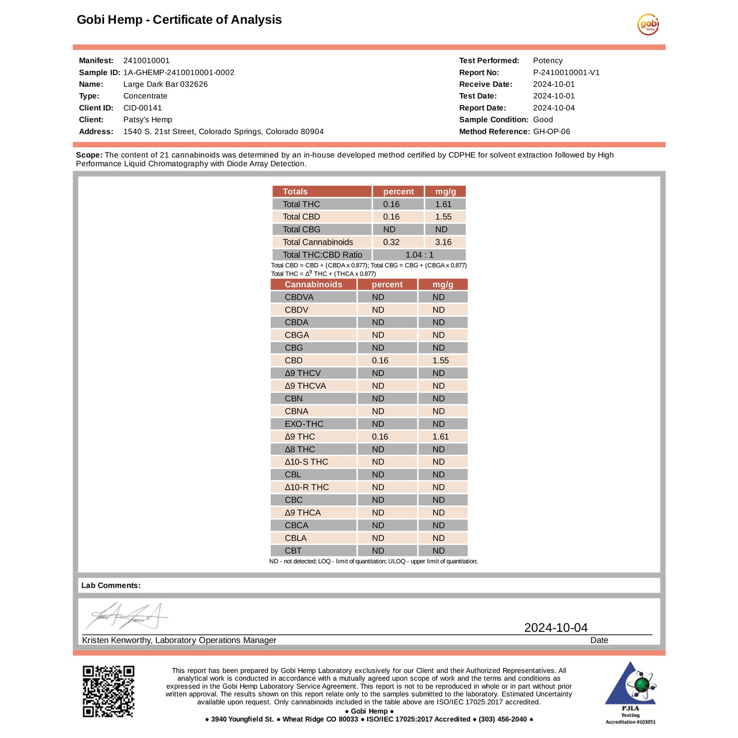 1 square (15mg Delta 9 THC + 15mg CBD)