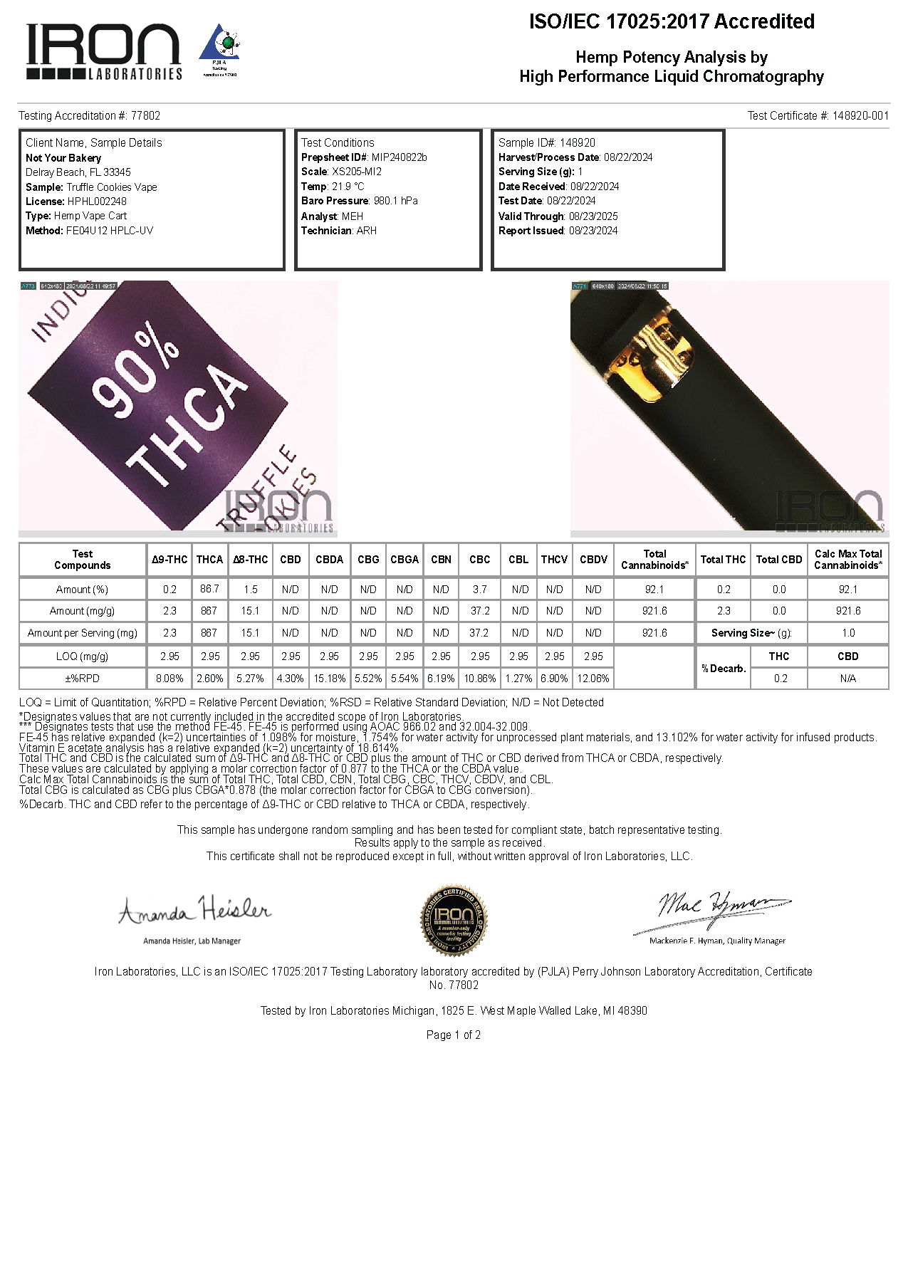 Not Your Bakery | THCA Disposable Vape 1g - Truffle Cookies (Indica)
