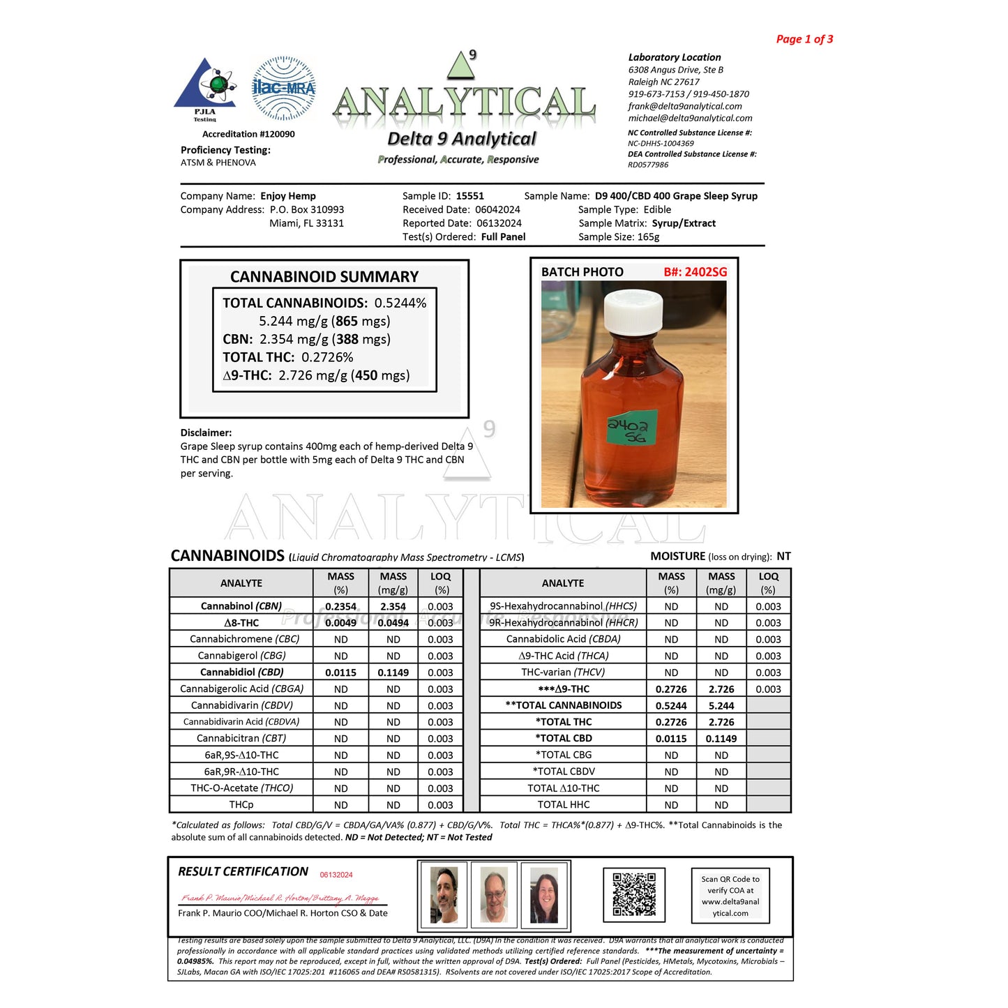 Enjoy Hemp | Sleep Live Rosin Delta 9 THC + CBN Syrup 800mg - Grape (Indica)
