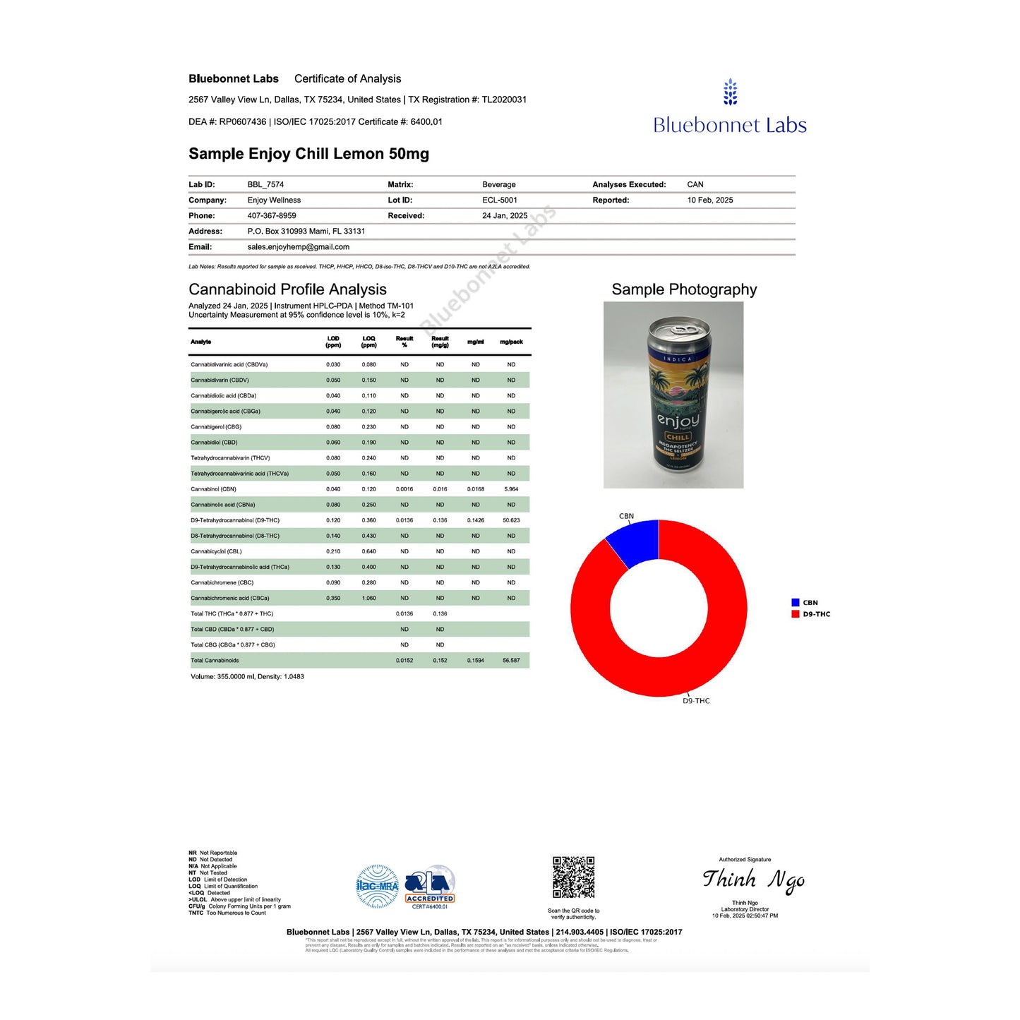 Enjoy Hemp | Chill Delta 9 THC + CBN Seltzer - Lemon - 50mg (Indica) - 12 fl oz