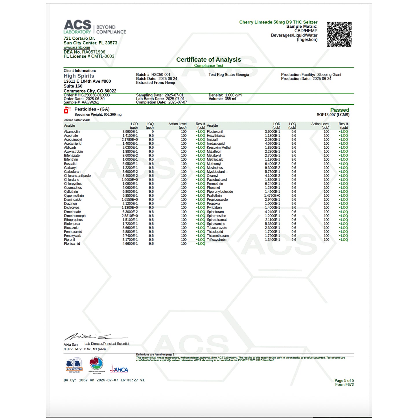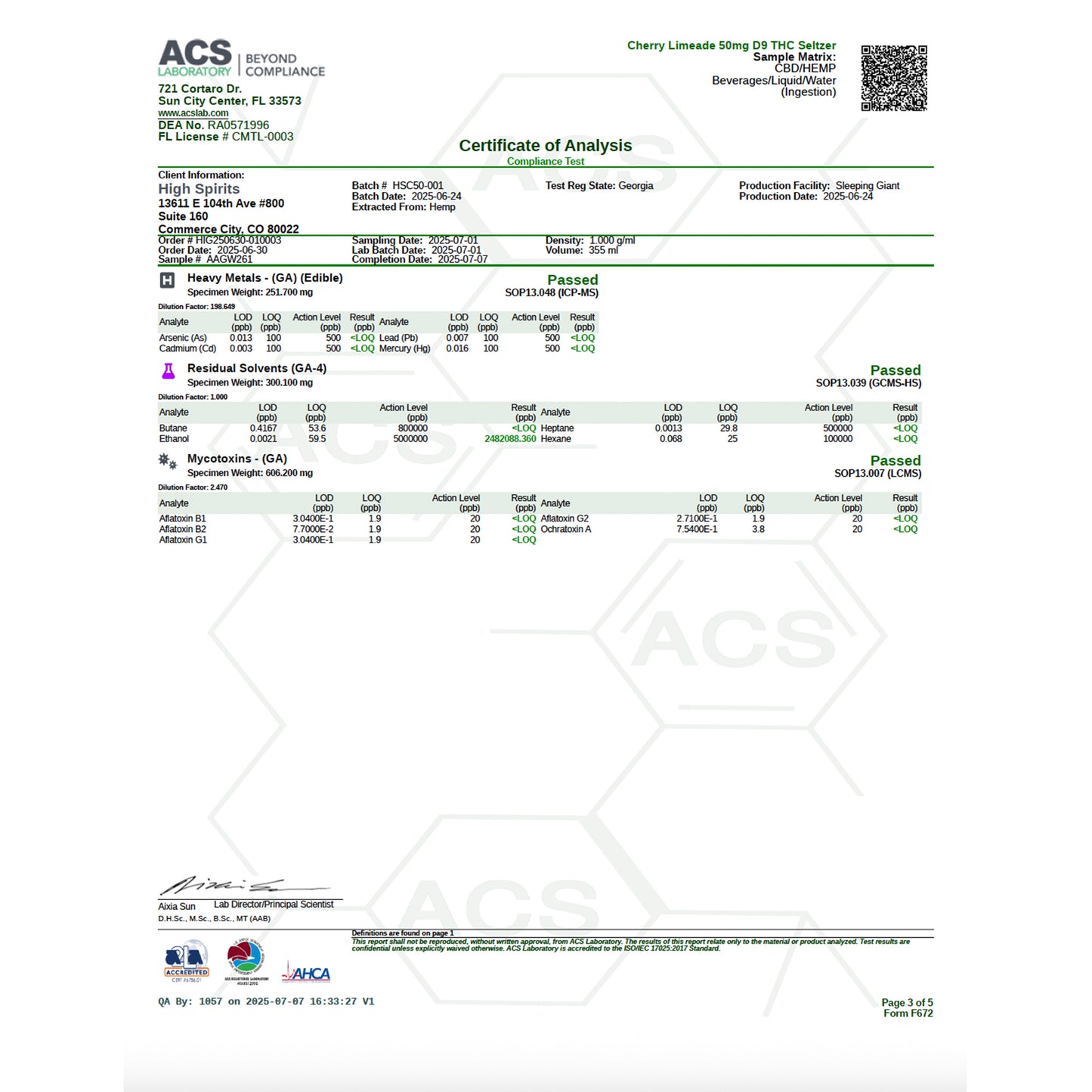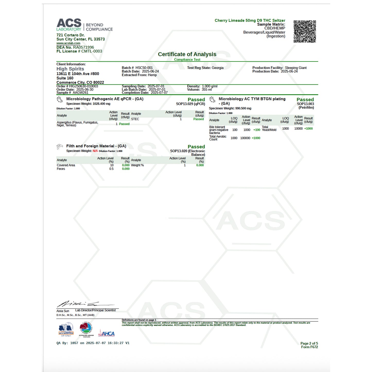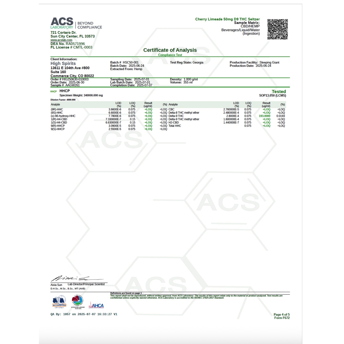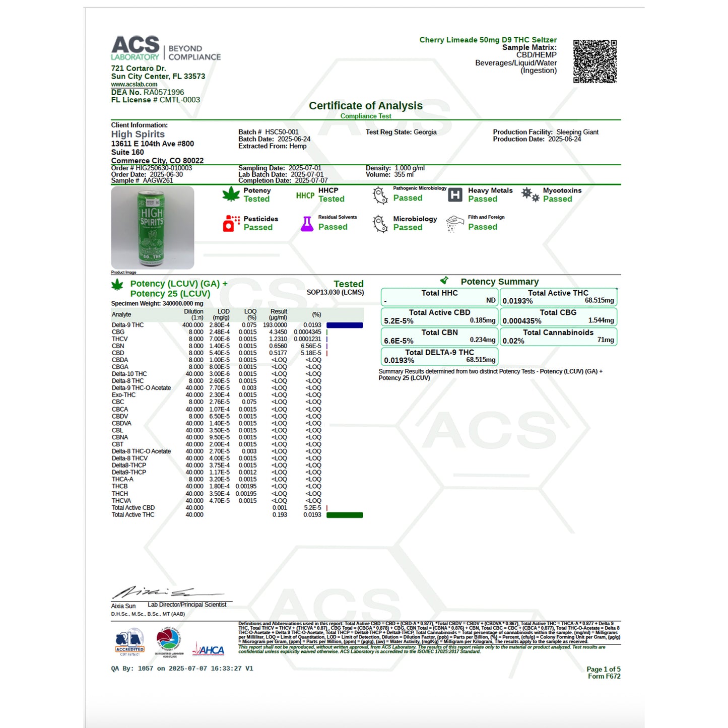 High Spirits Cherry Limeade Indica Cannabis Seltzer, your gateway to tranquility in a can. This premium cannabis-infused seltzer brings a harmonious blend of 10mg Delta 9 THC and Cherry Limeade flavors, offering a serene experience with a delightful twist of cherry and lime flavors.