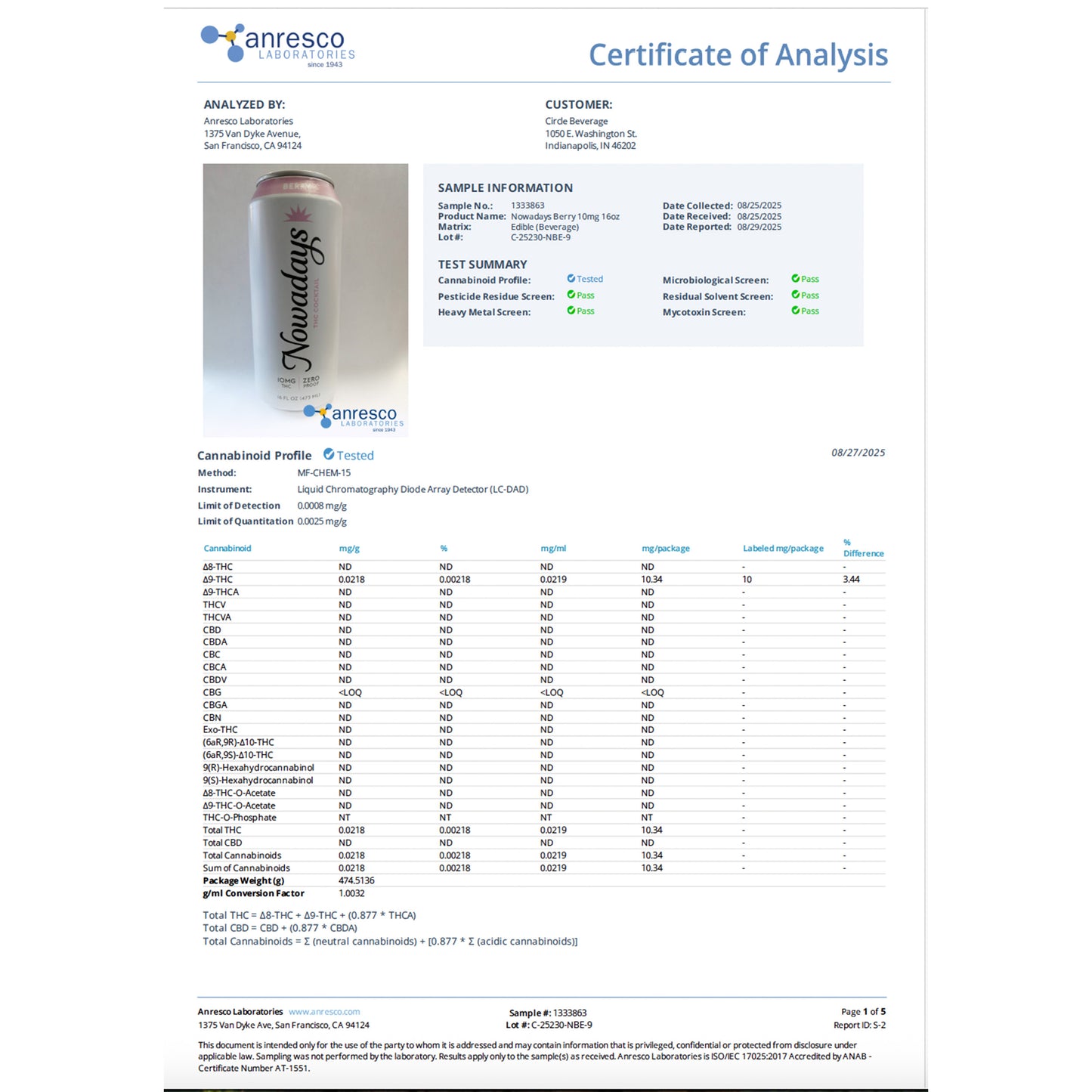 8 fl oz (5mg D9 THC per serving) (2 servings per container)