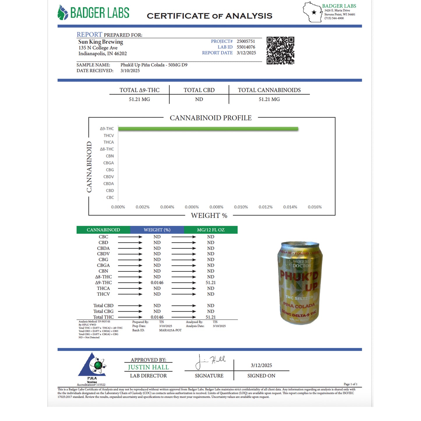 Phuk'd Up | Delta 9 THC Seltzer - Pina Colada Infusion - 50mg -12 fl oz