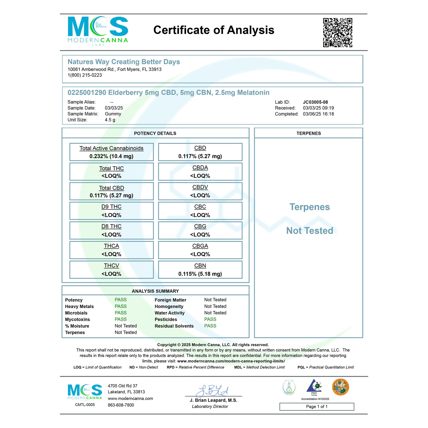 Creating Better Days | CBD + CBN + Melatonin Gummies 300mg - Elderberry