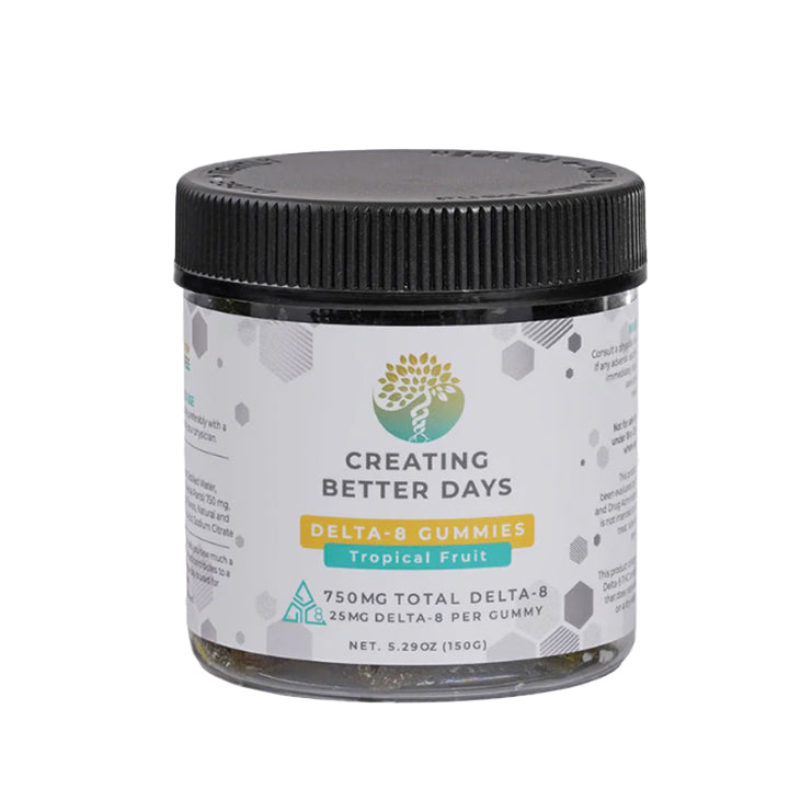 Creating Better Days’ 750mg Delta 8 THC Tropical Fruit Gummies – the perfect way to enjoy the benefits of Delta 8 THC in a delicious and convenient form!