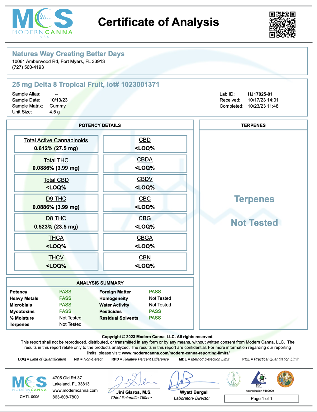 Each gummy is infused with 25mg of pure Delta 8 THC.