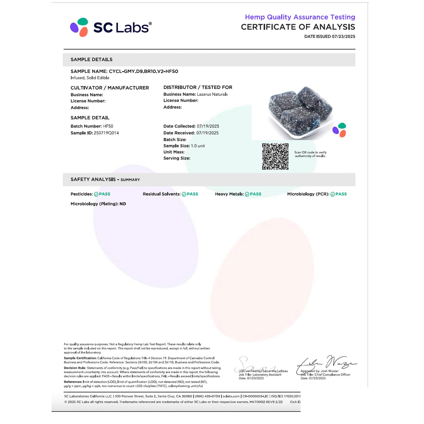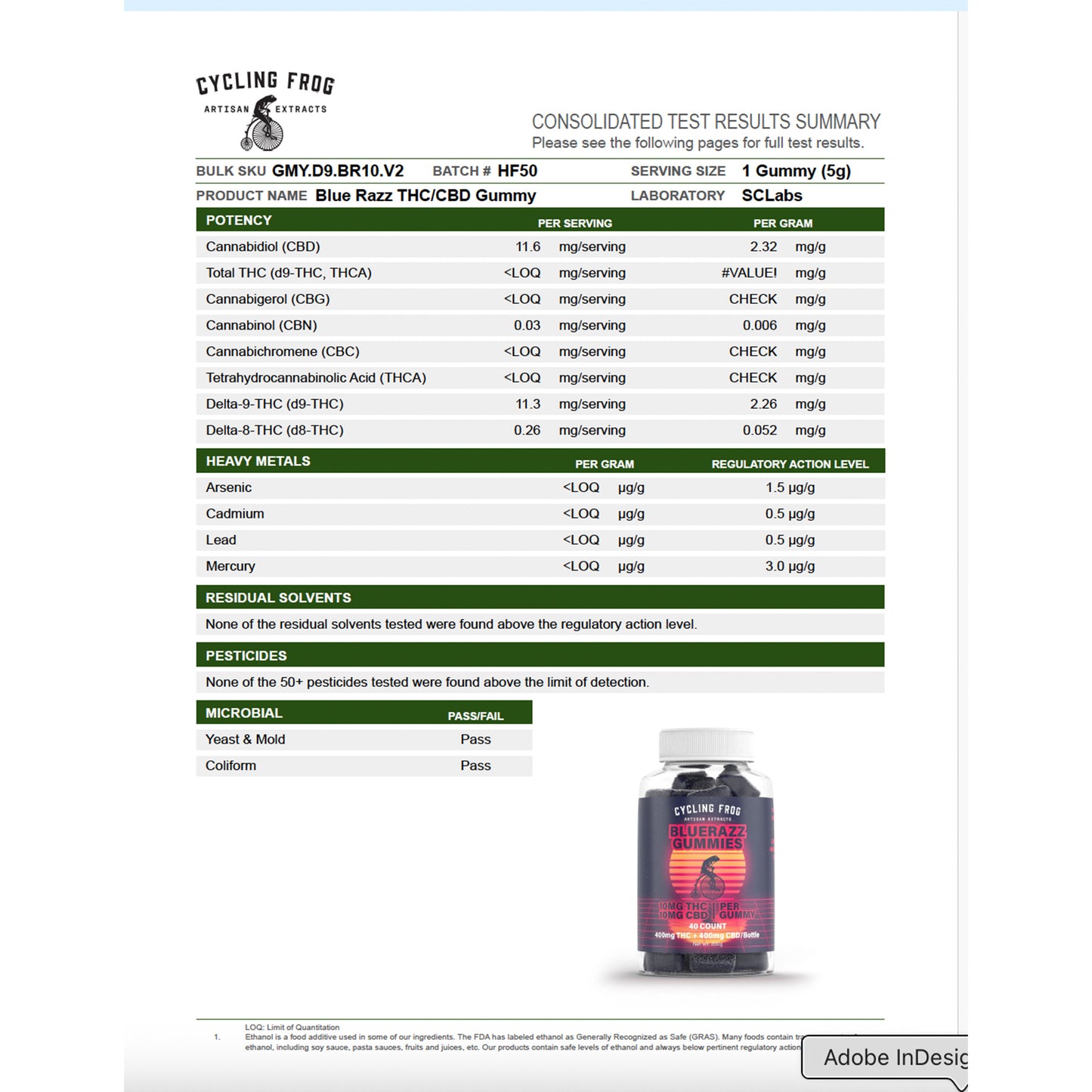 Cycling Frog | 1:1 Delta 9 THC + CBD Gummies 20mg - BlueRazz - 40ct