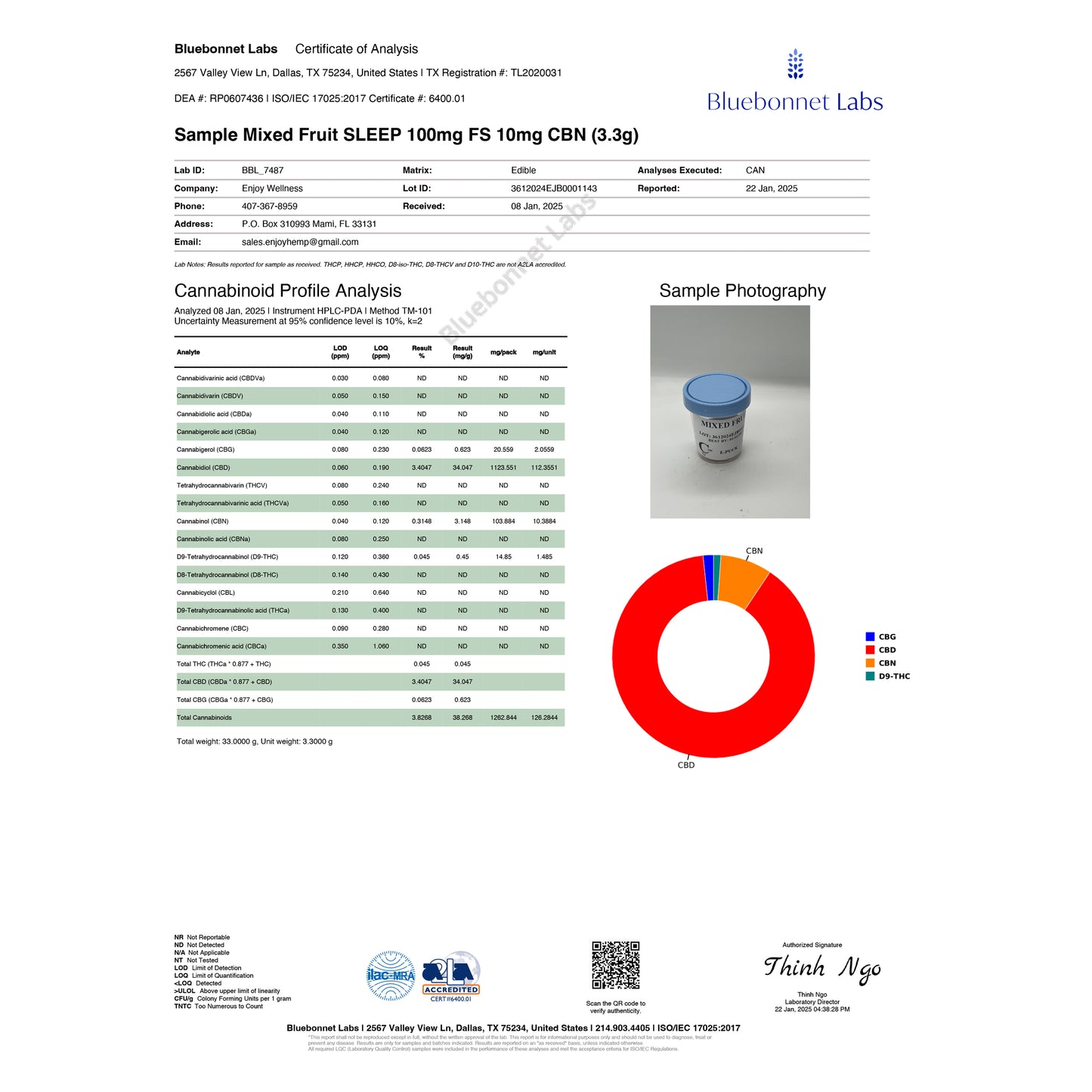 Enjoy Hemp | CBD + CBN Sleep FS Gummies 3300mg