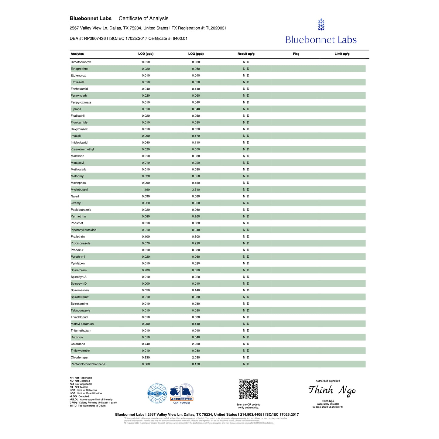 Each gummy contains: 100mg FS CBD, 50mg of Maca Root, 50 mg of Schisandra, 50 mg of Damiana, 50 mg of Muira Puama.