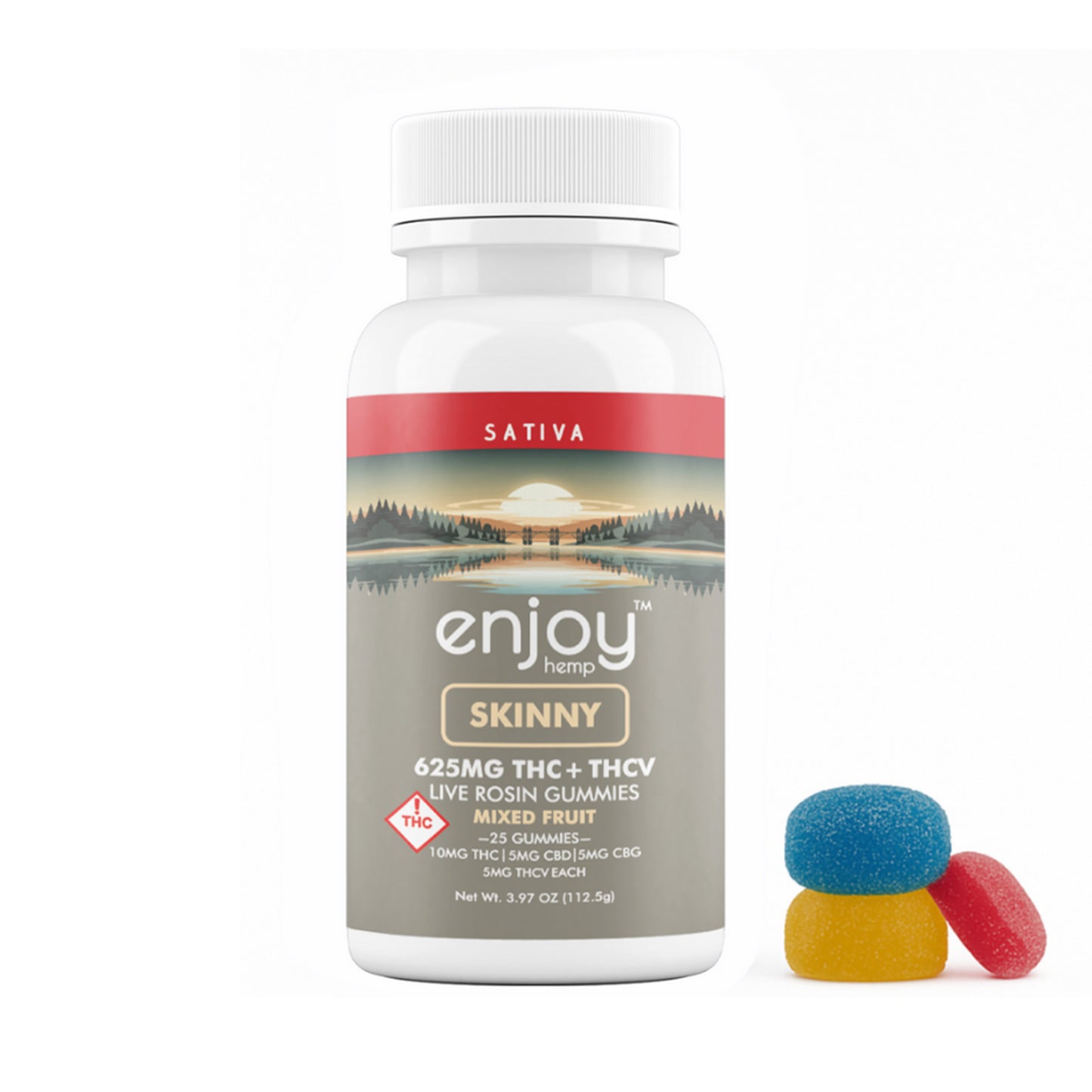 Enjoy Hemp | Skinny Delta 9 THC + THCV Live Rosin 625mg Gummies - Mixed Fruit (Sativa) - 25ct