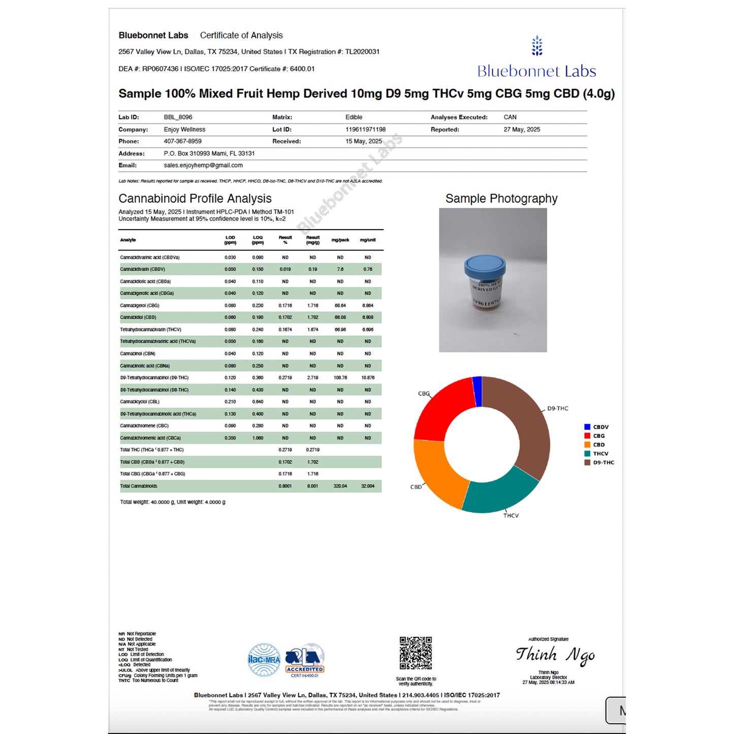 1 gummy (10mg Delta 9 THC + 5mg THCV + 5mg CBD + 5mg CBG)