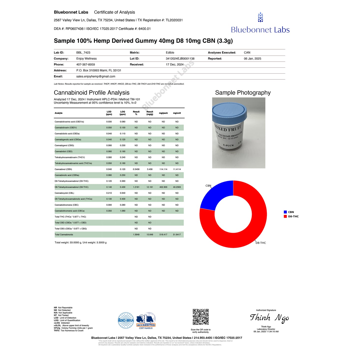 Enjoy Hemp | Sleep Delta 8 THC + CBN Live Resin Gummies - Mixed Fruit (Indica)