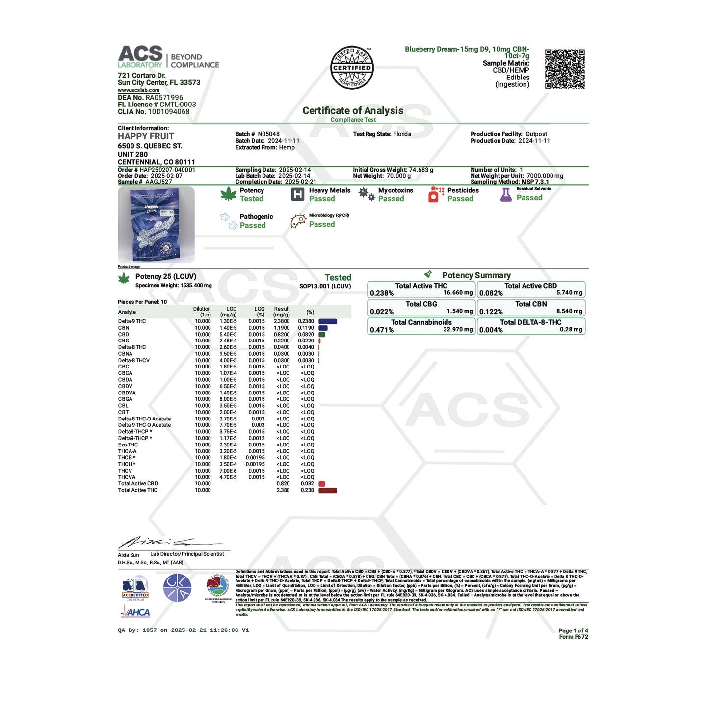 Happy Fruit | Blueberry Dream Delta 9 THC + CBN Sleep Gummies - Blueberry
