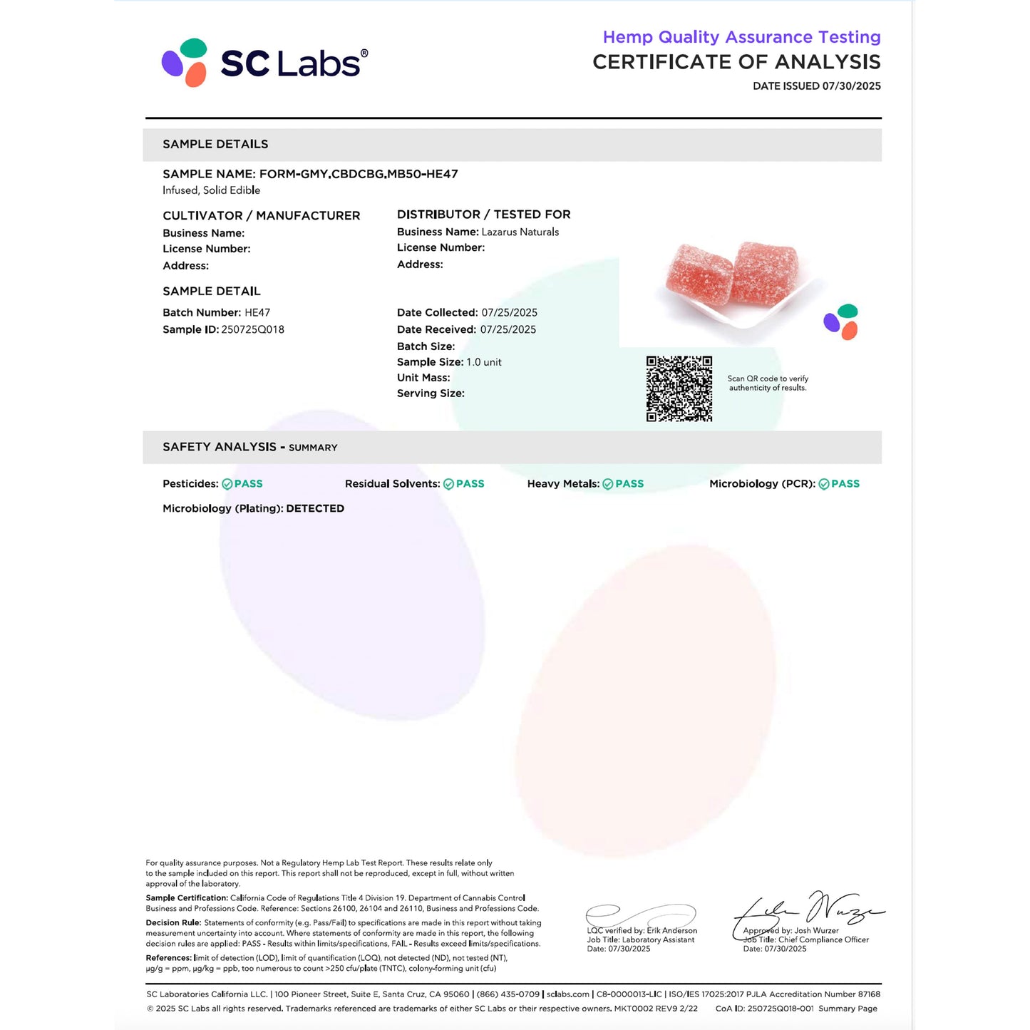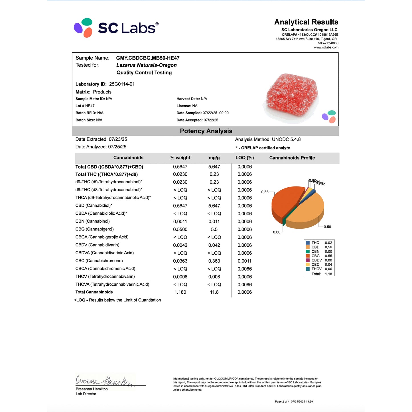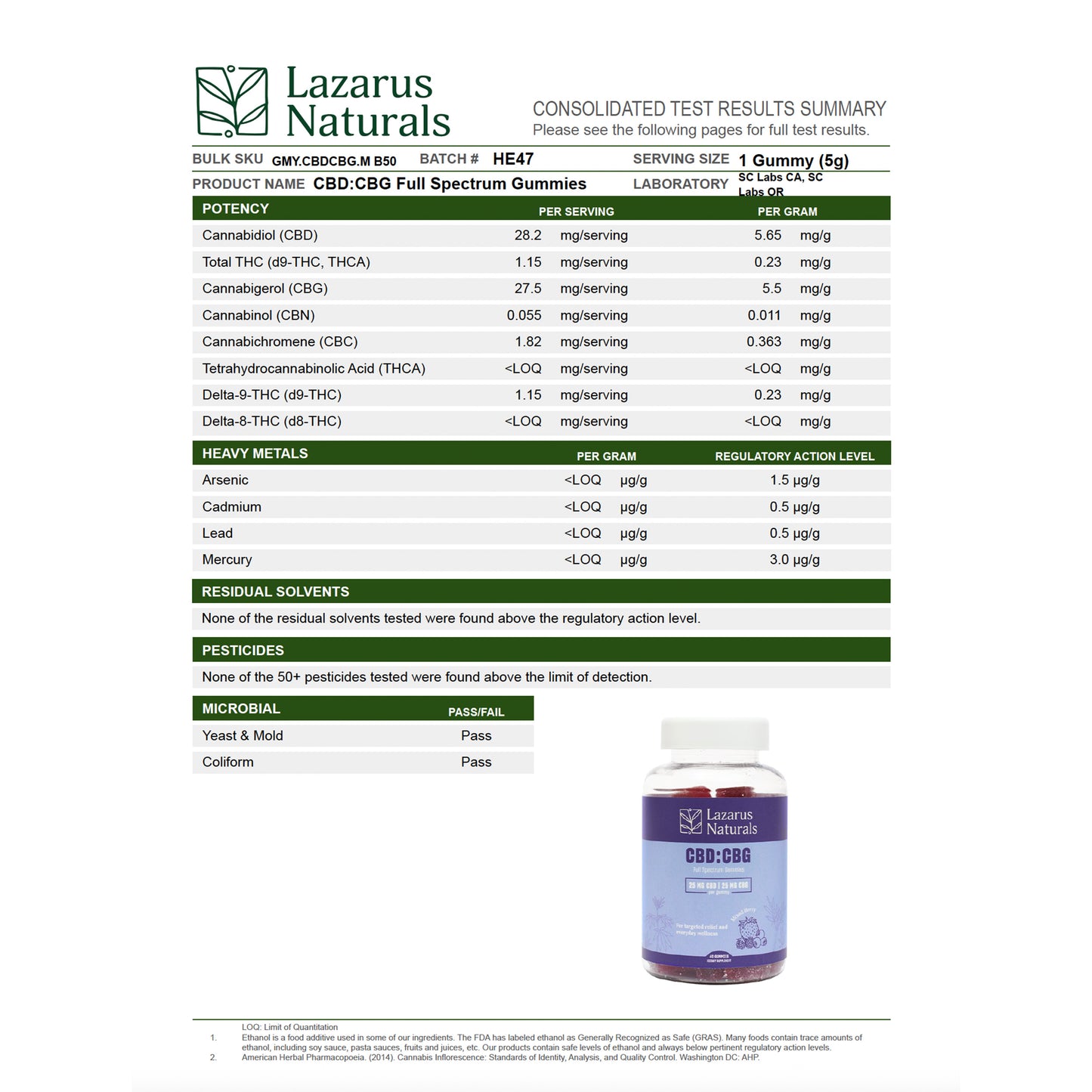 Lazarus Naturals | CBD + CBG Full Spectrum Gummies 50mg - 40ct