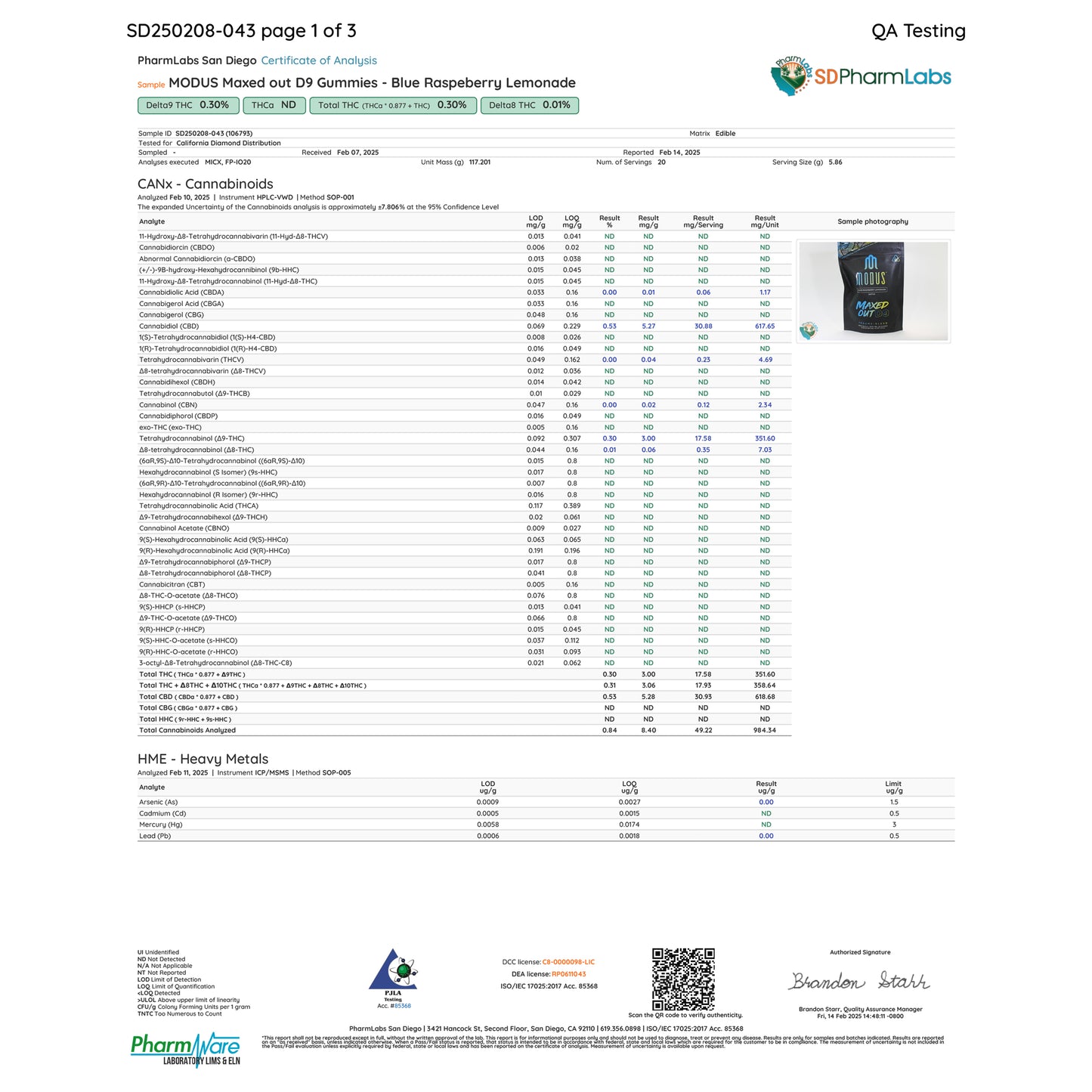 Modus | Maxed Out D9 | 1000mg Gummies Delta 9 THC + CBD 20ct - Blue Raspberry Lemonade (Sativa)
