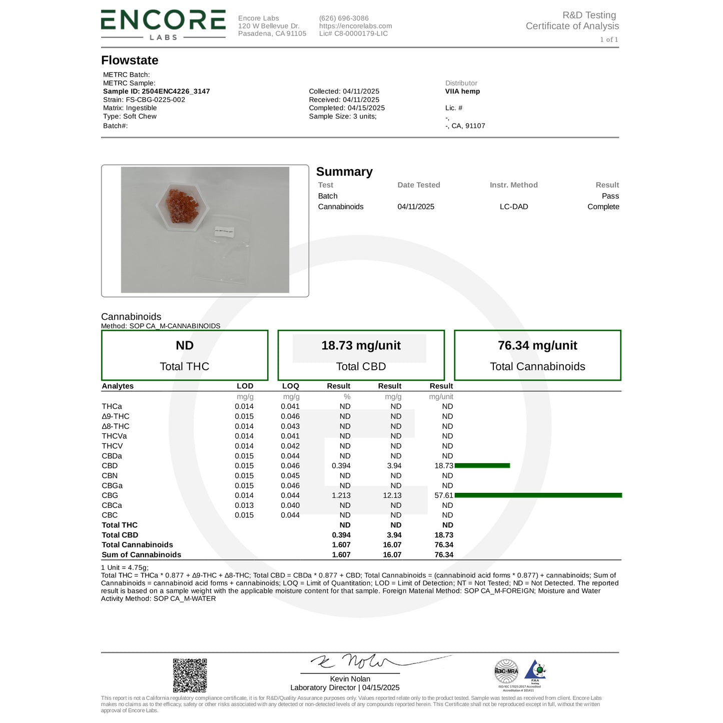 1 gummy - 20mg FS CBD, 60mg CBG, B12, Lion's Mane