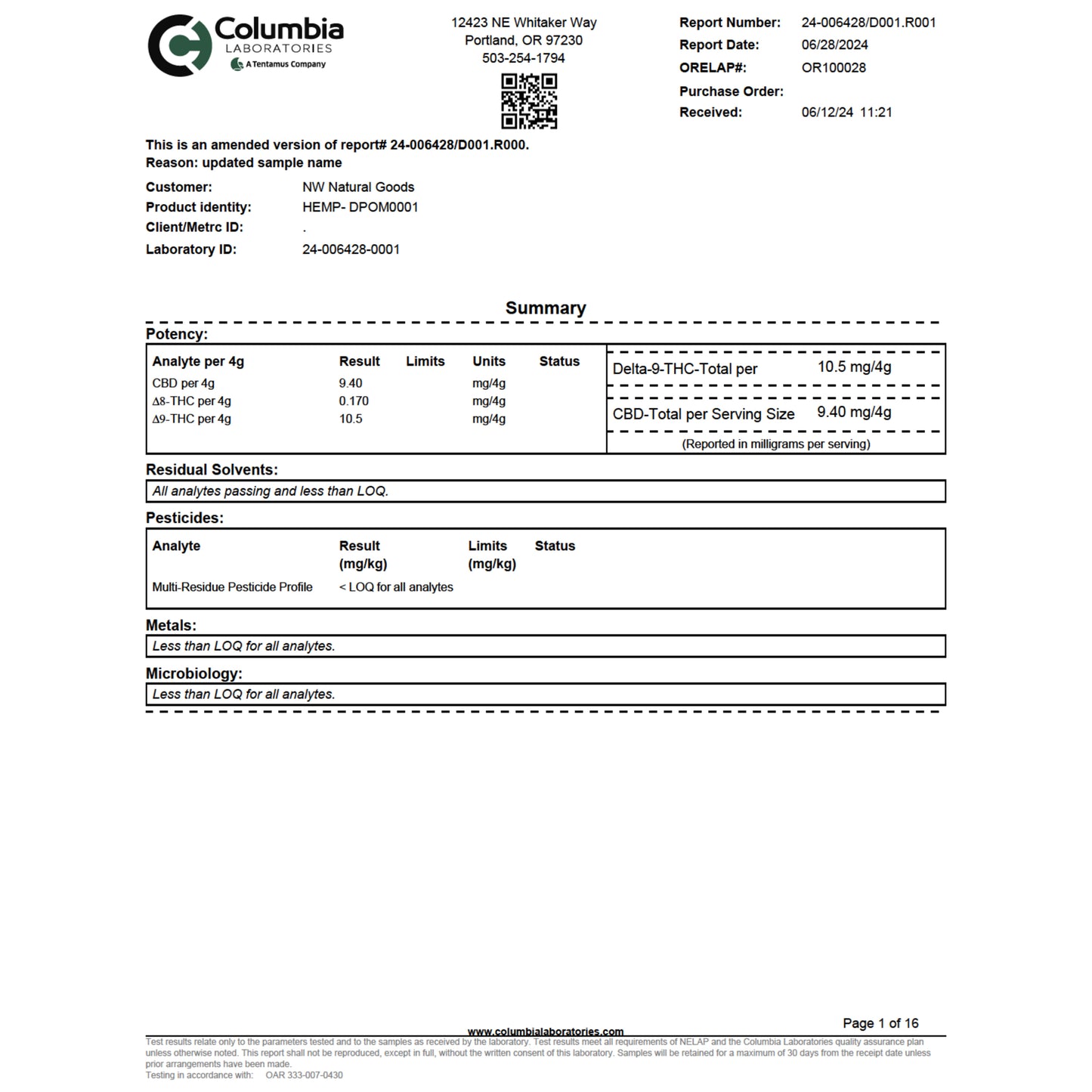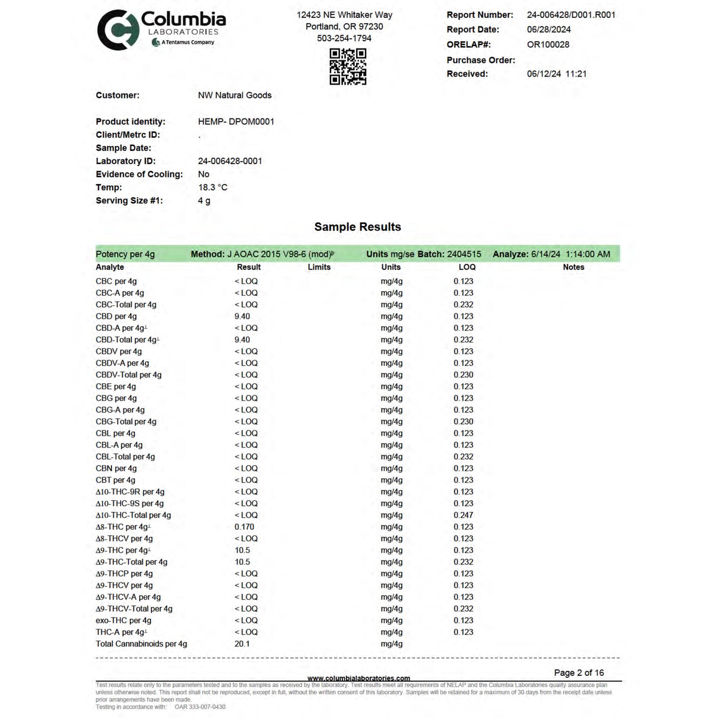 This gummy pairs Hemp Delta-9 THC with CBD and Wyld's hybrid botanical terpene blend for a balanced and refreshing experience. CBD combined with THC provides a perfect blend of refreshing and restorative effects.