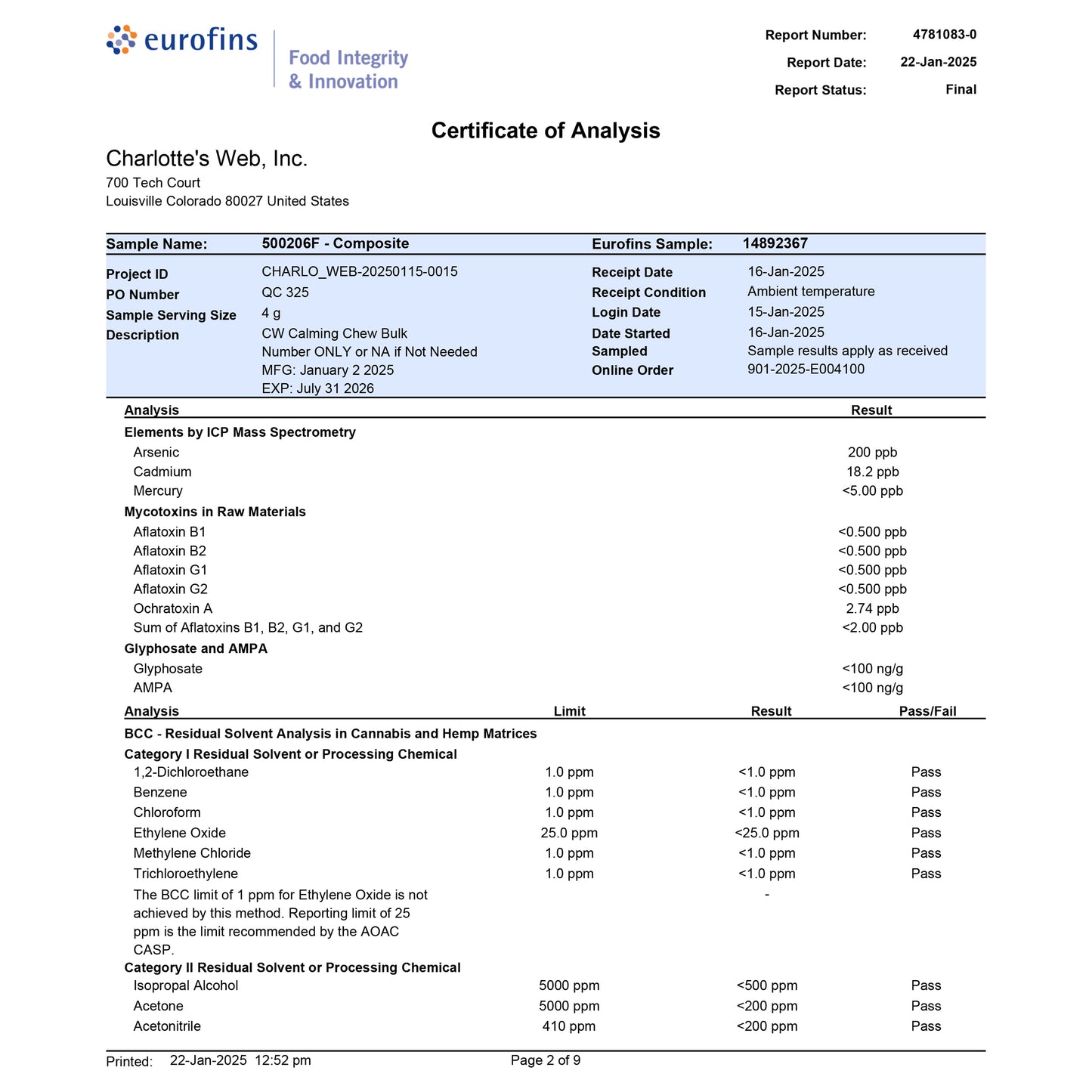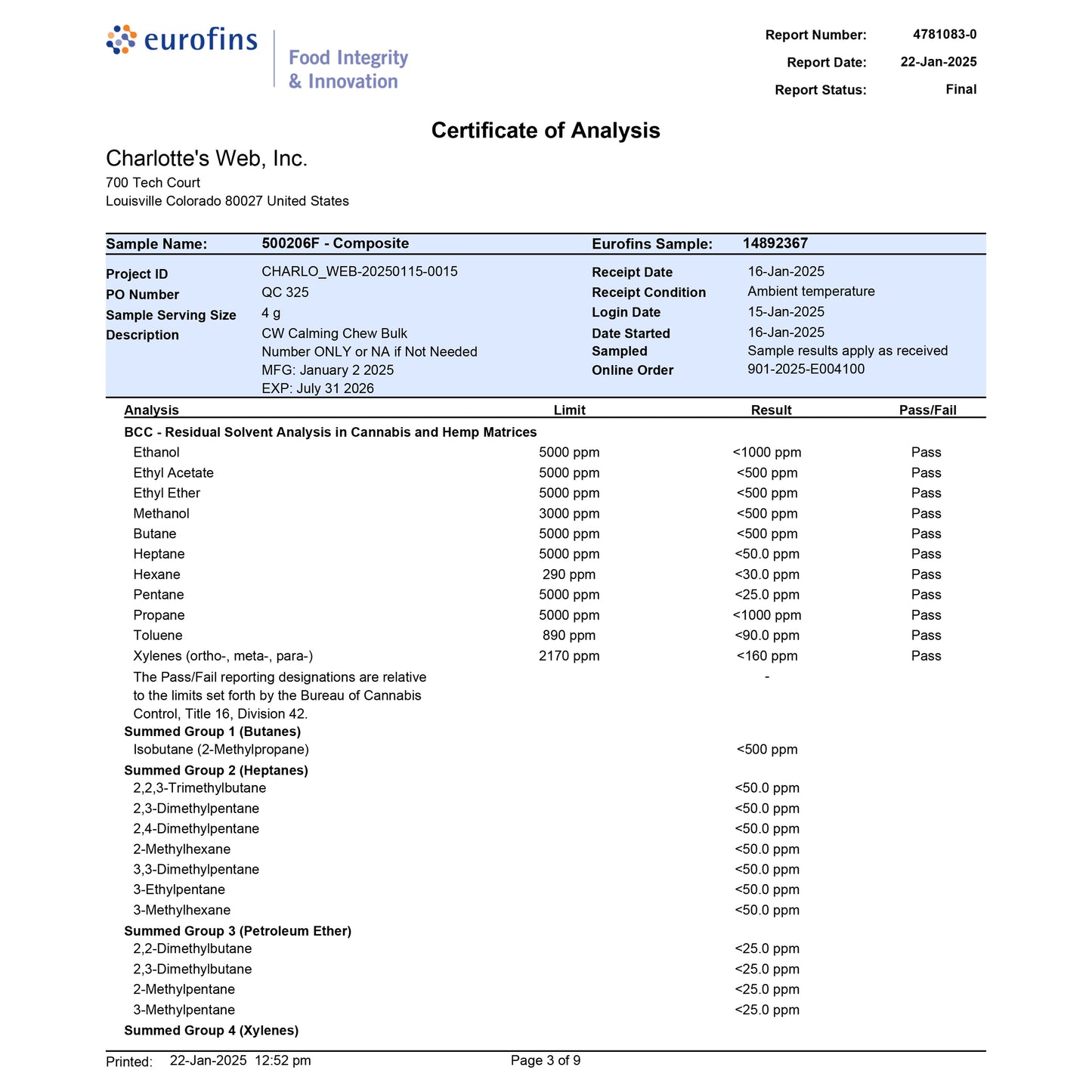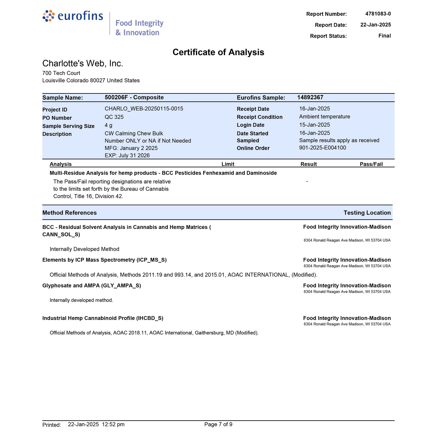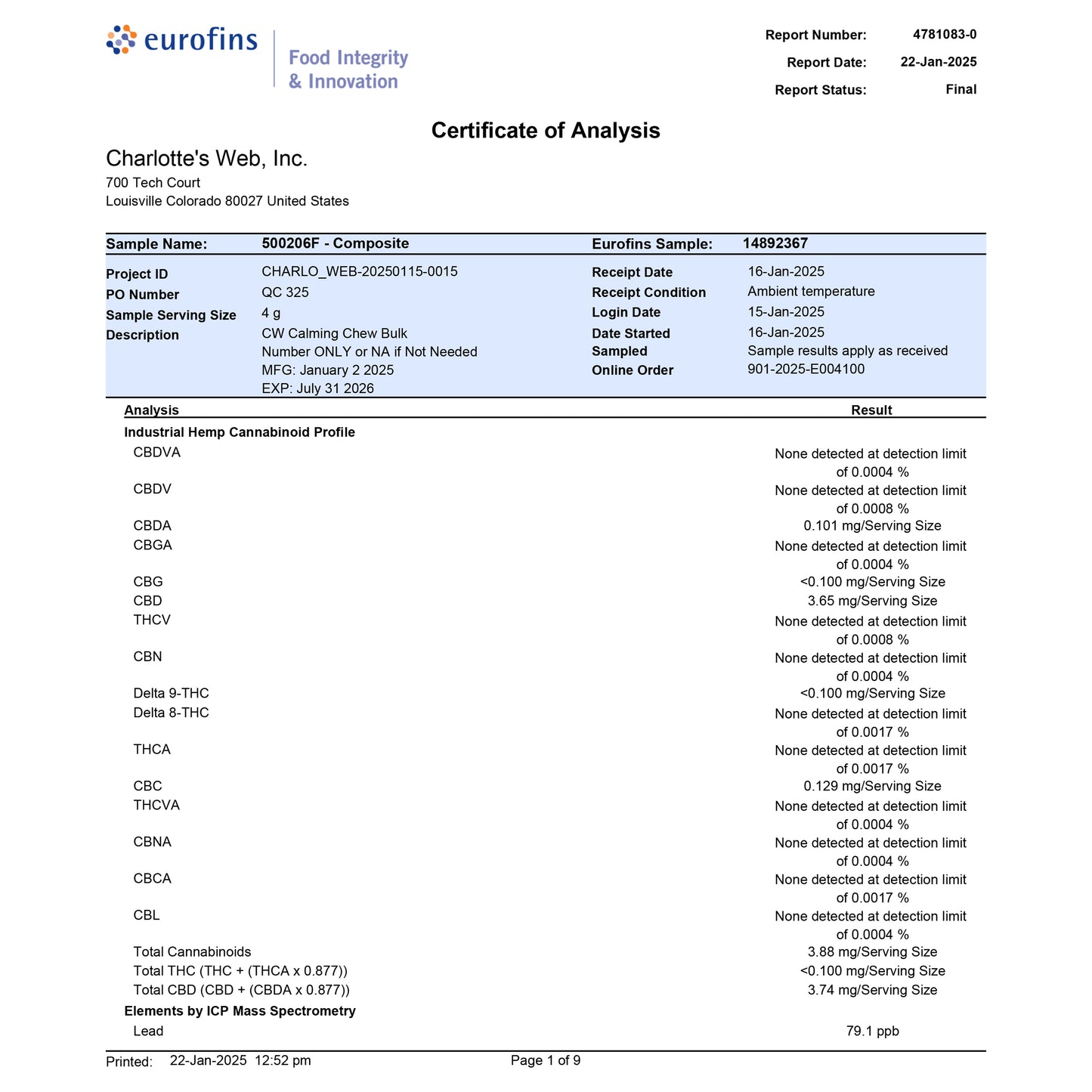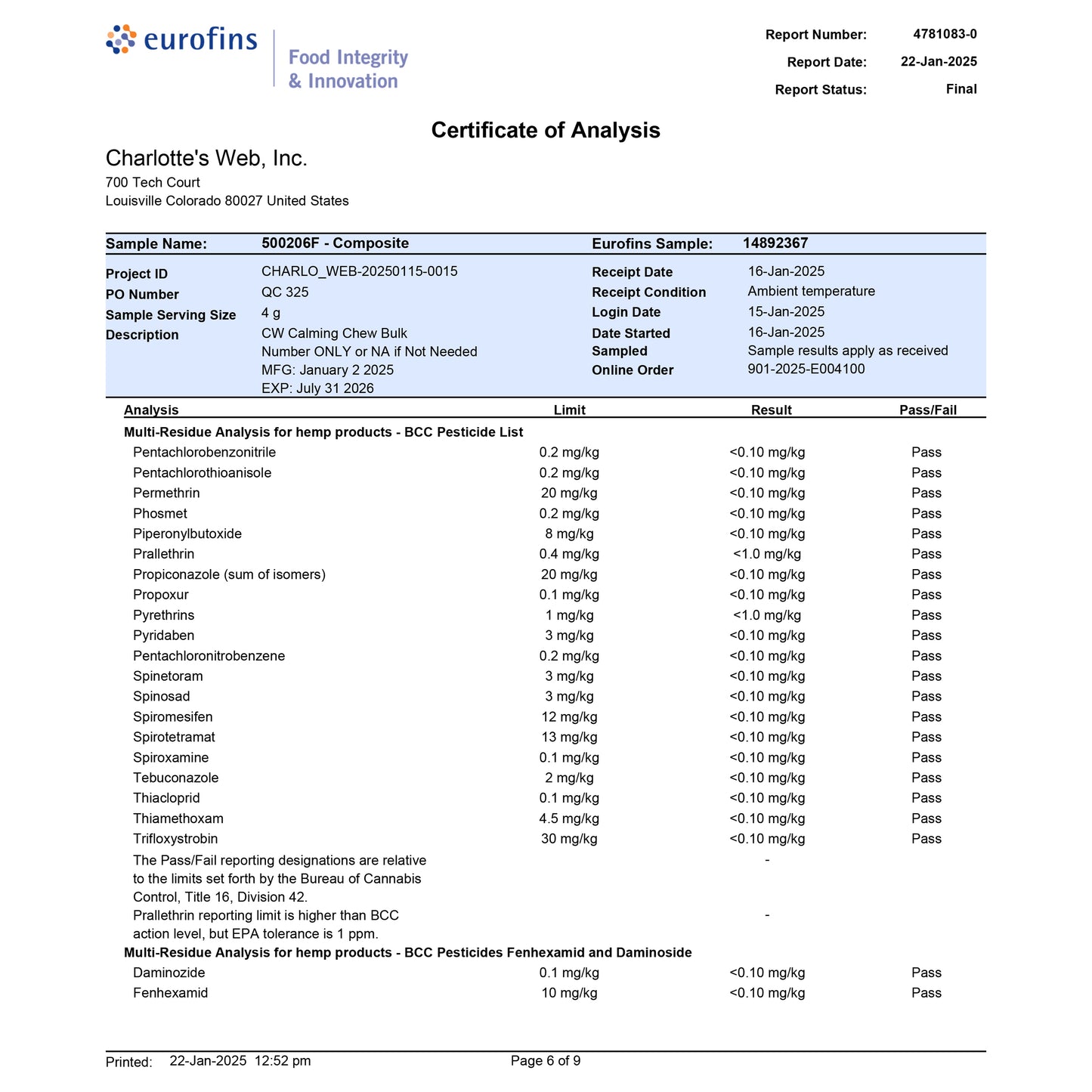 Charlotte's Web | Pet | CBD Full Spectrum Pet Calming Chews 2.5mg 60ct - Chicken Flavor