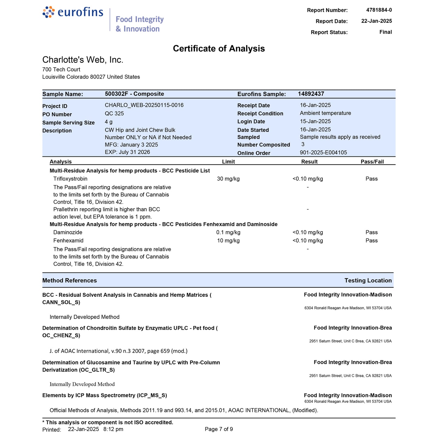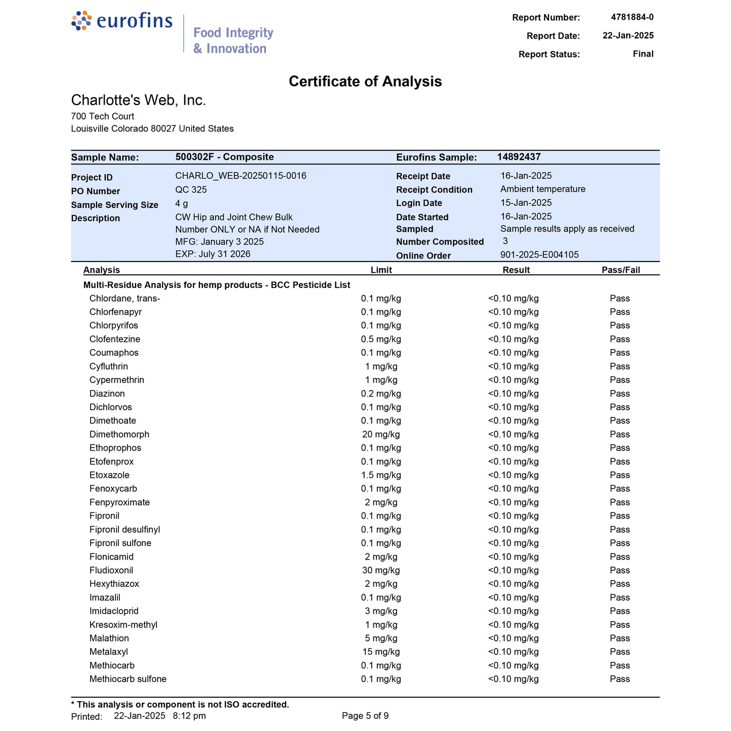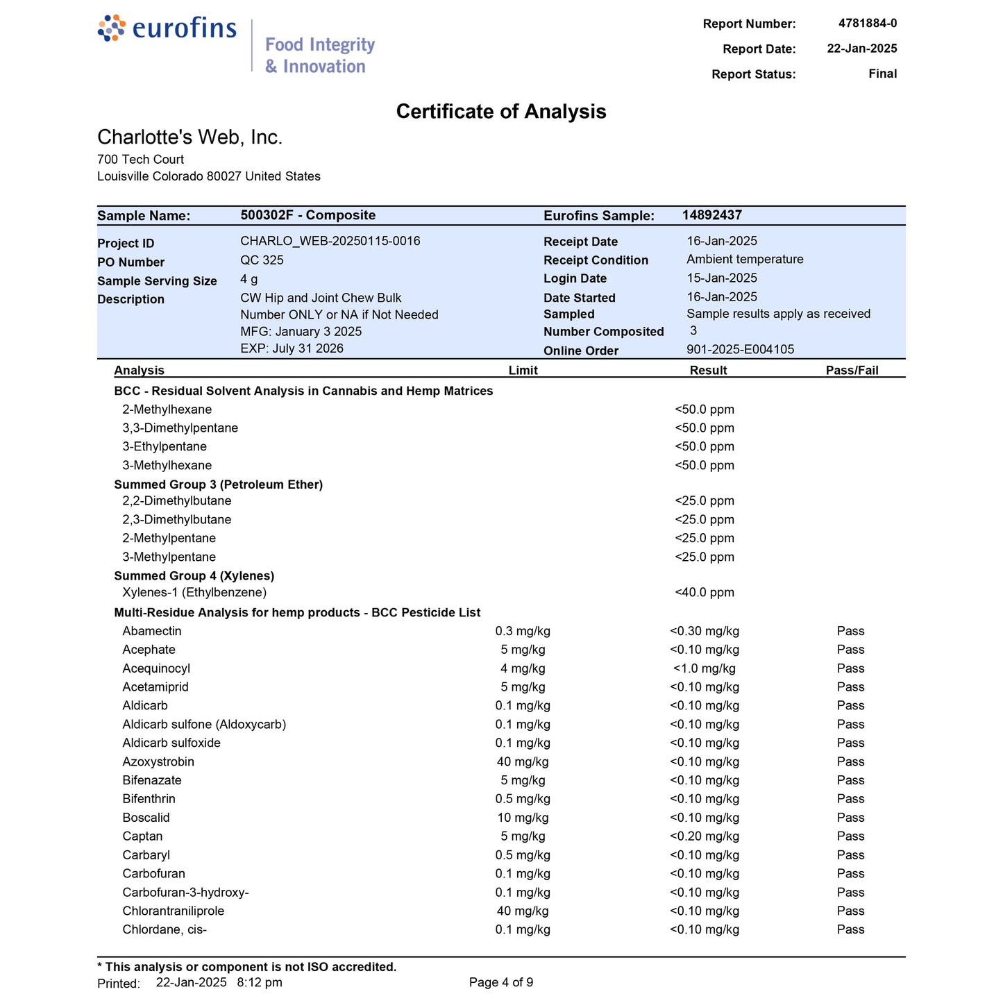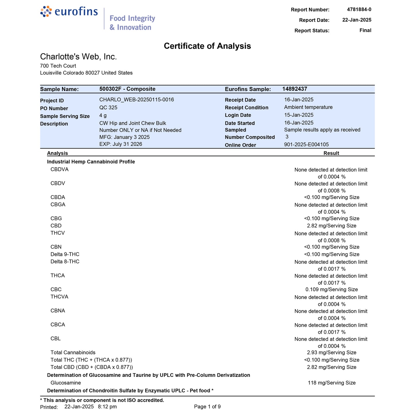 Charlotte's Web | Pet | CBD Full Spectrum Pet Hip & Joint Chews 2.5mg 30ct - Chicken Flavor