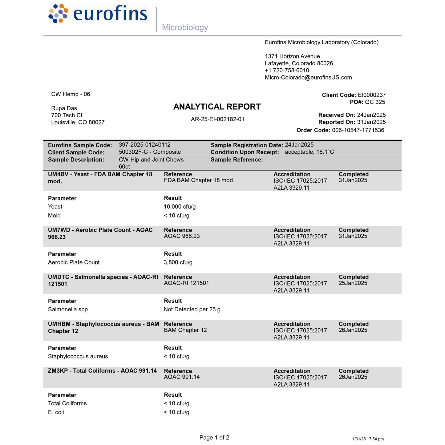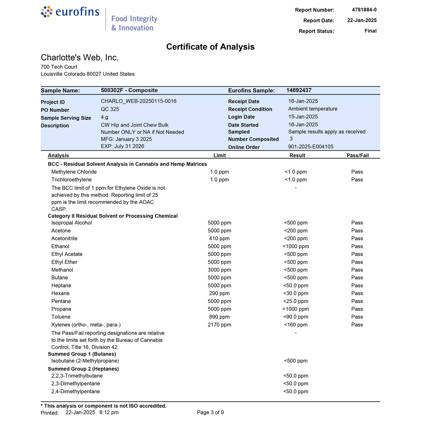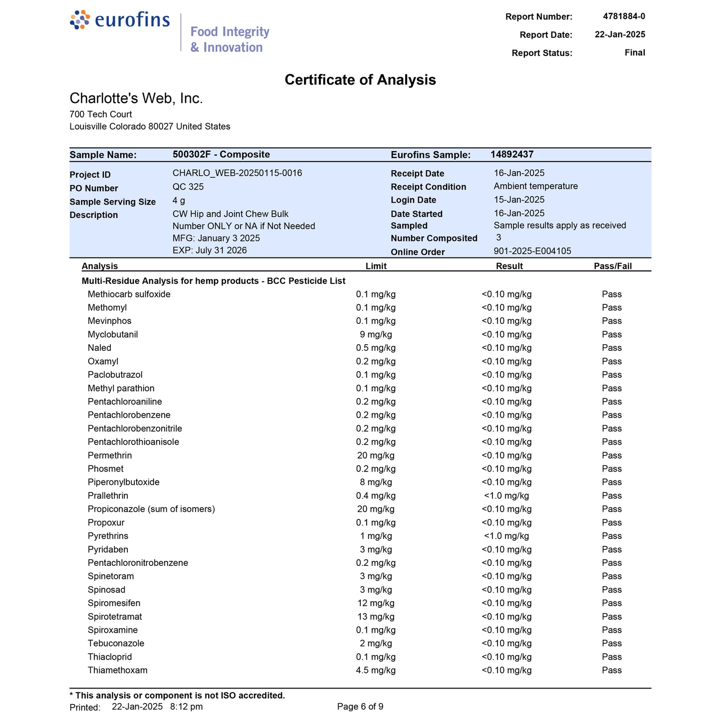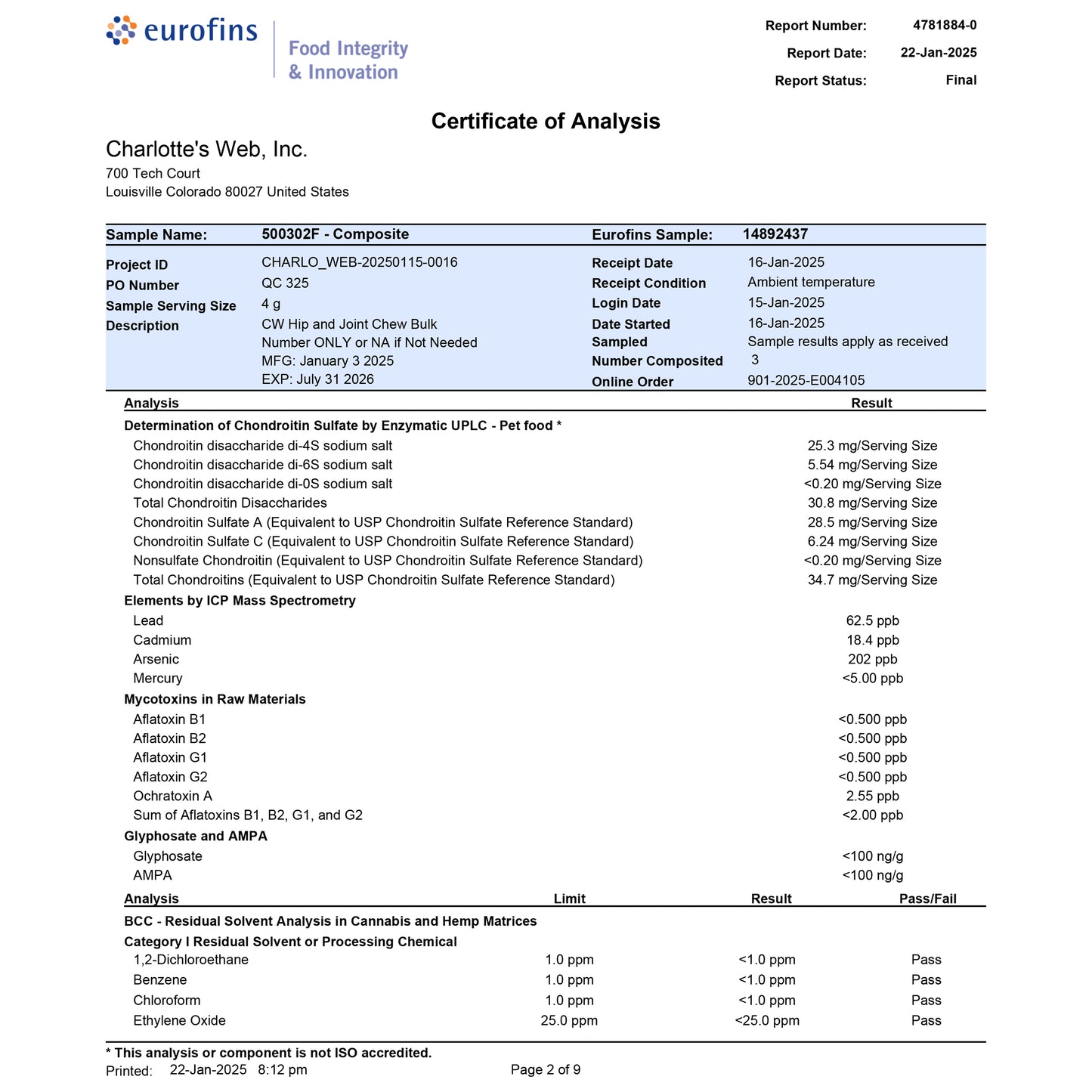 Charlotte's Web | Pet | CBD Full Spectrum Pet Hip & Joint Chews 2.5mg 60ct - Chicken Flavor