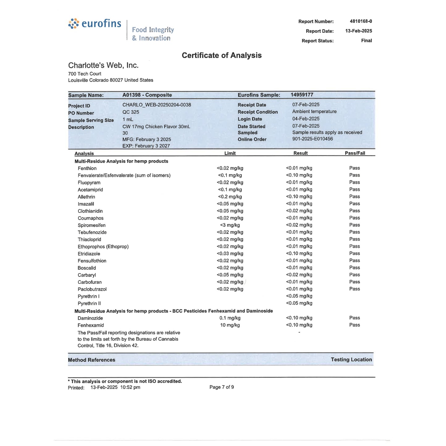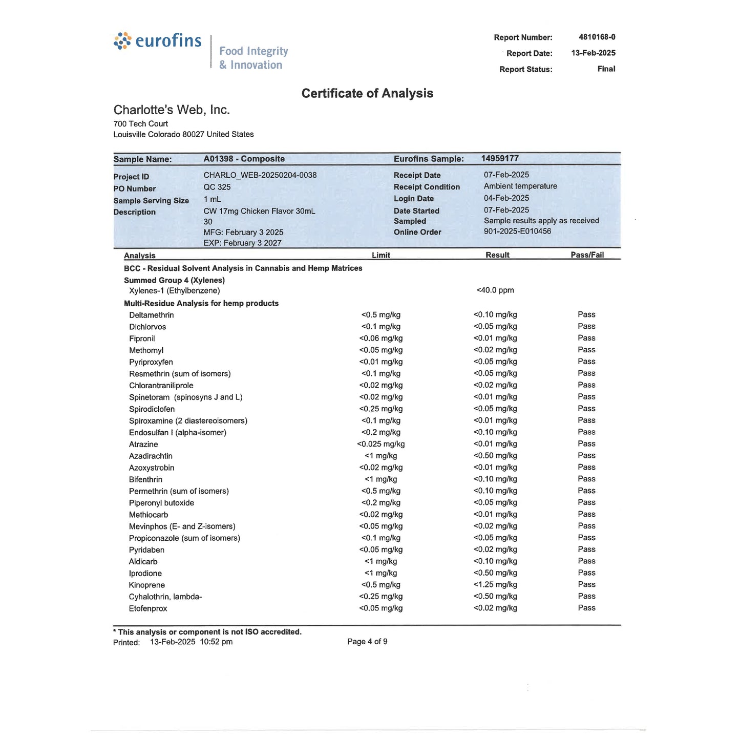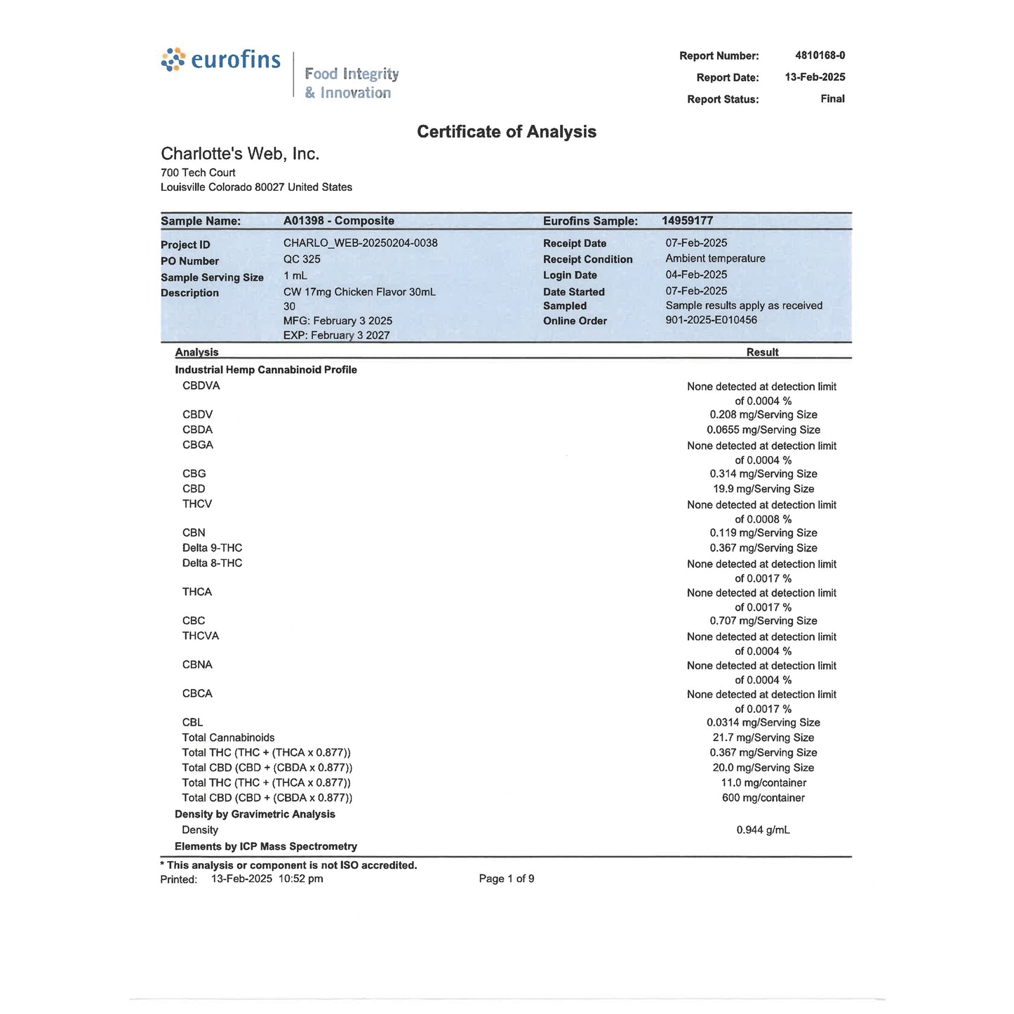 Charlotte's Web | Pet | Full Spectrum CBD Dog Tincture 17mg/30ml- Chicken Flavor