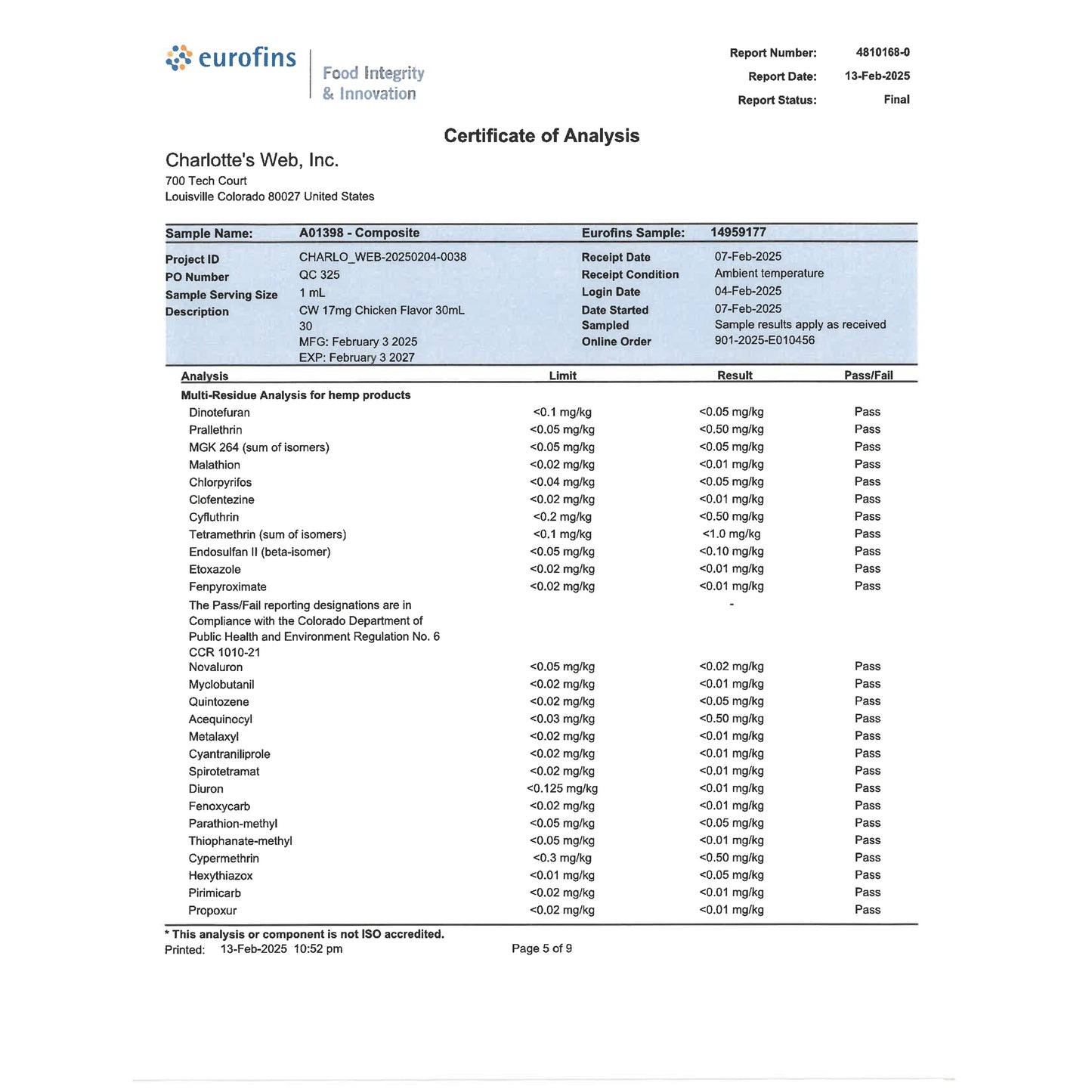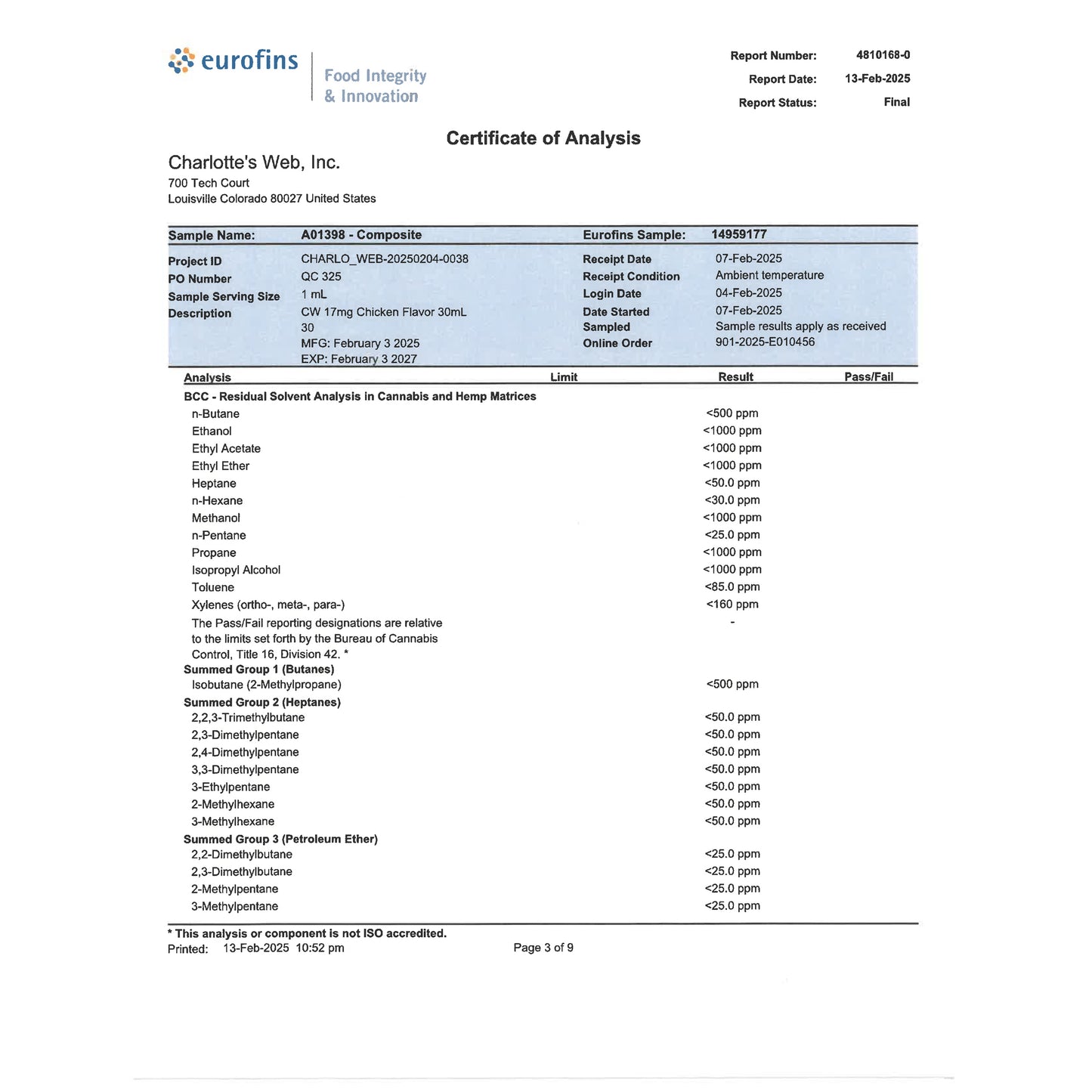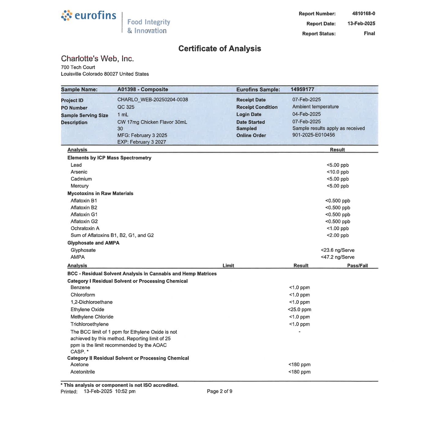 Charlotte's Web | Pet | Full Spectrum CBD Dog Tincture 17mg/30ml- Chicken Flavor