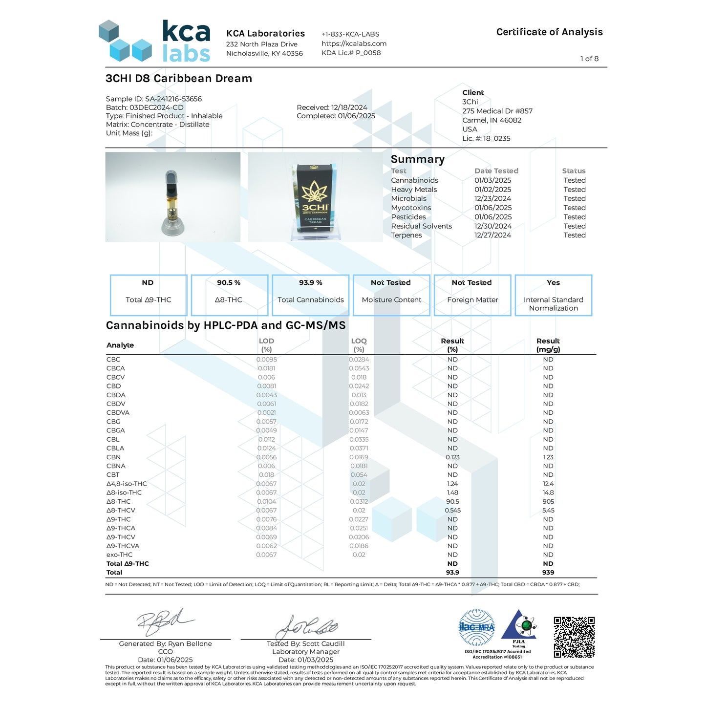 3Chi | Delta 8 THC Vape Cartridge – Caribbean Dream (Sativa Hybrid)