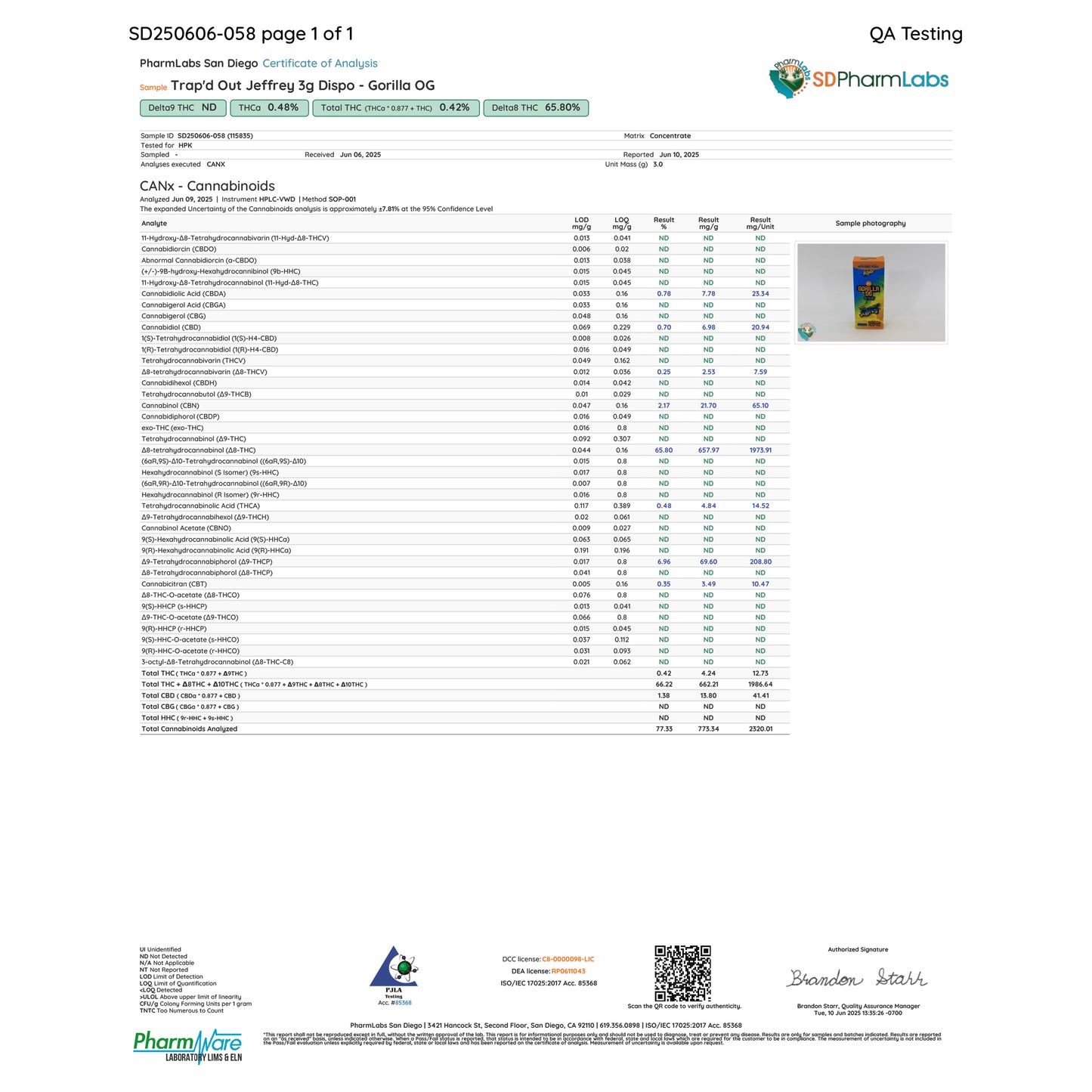 Trap’d Out Jeffrey THC-A | THC-P | Delta 9 Vape Pen delivers an intense blend of quality cannabinoids. If you’re ready for the next step in your cannabis journey, this pen is it!