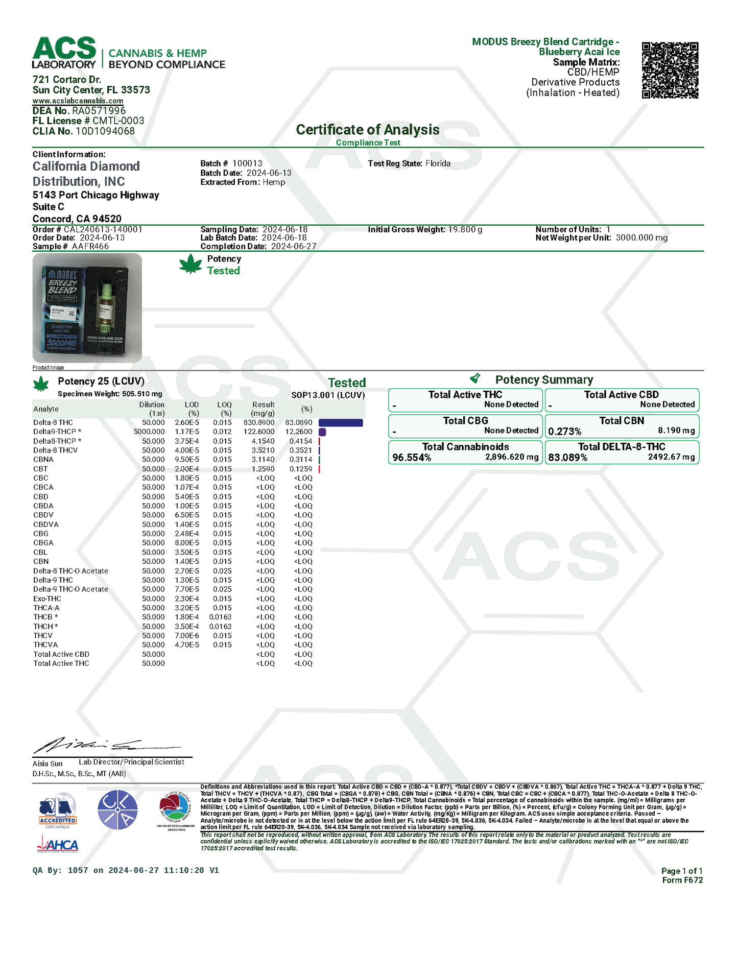 Modus | Breezy Blend | Disposable Vape 7500mg - Blueberry Acai Ice (Hybrid)
