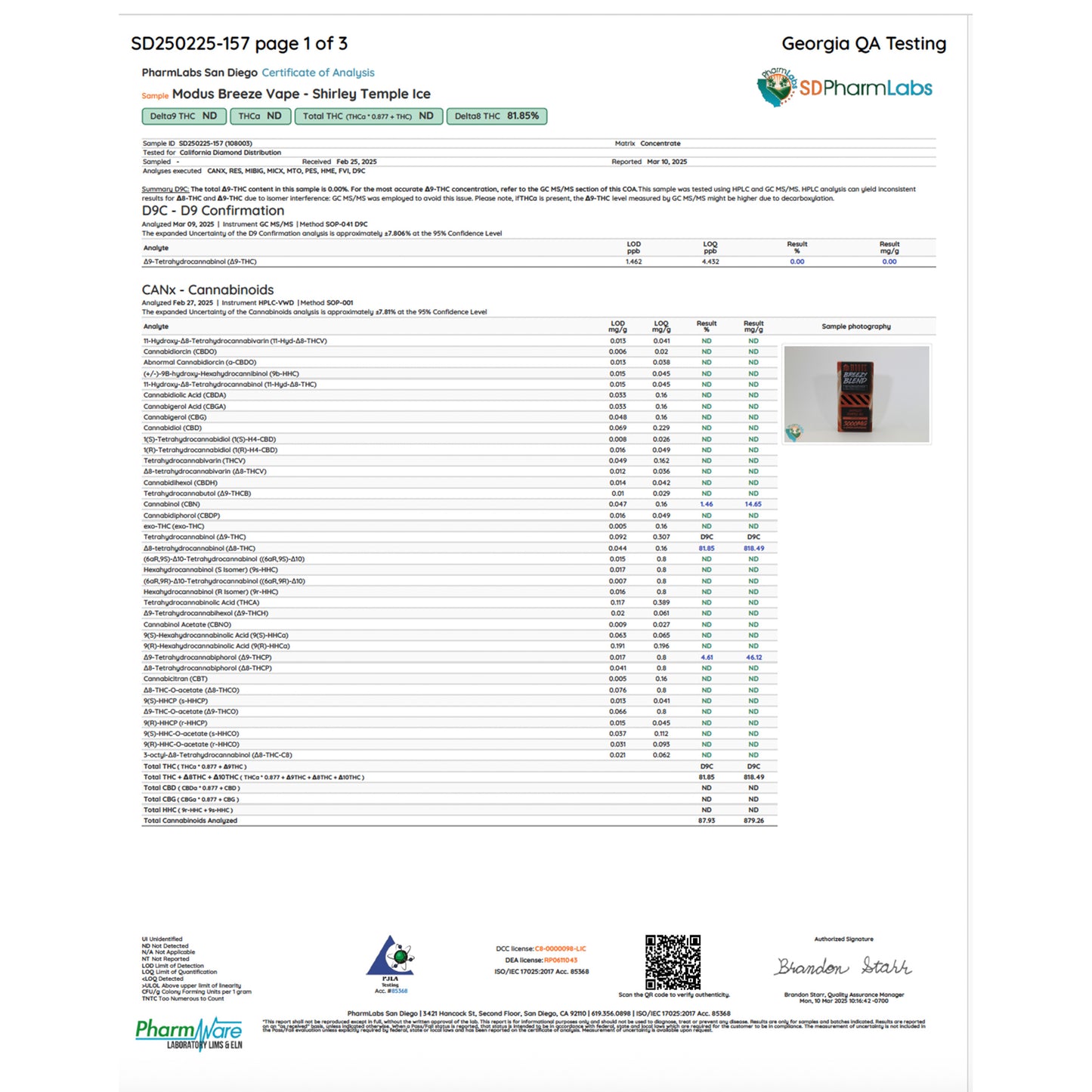 Modus | Breezy Blend | Disposable Vape 7500mg - Shirley Temple Ice (Indica)